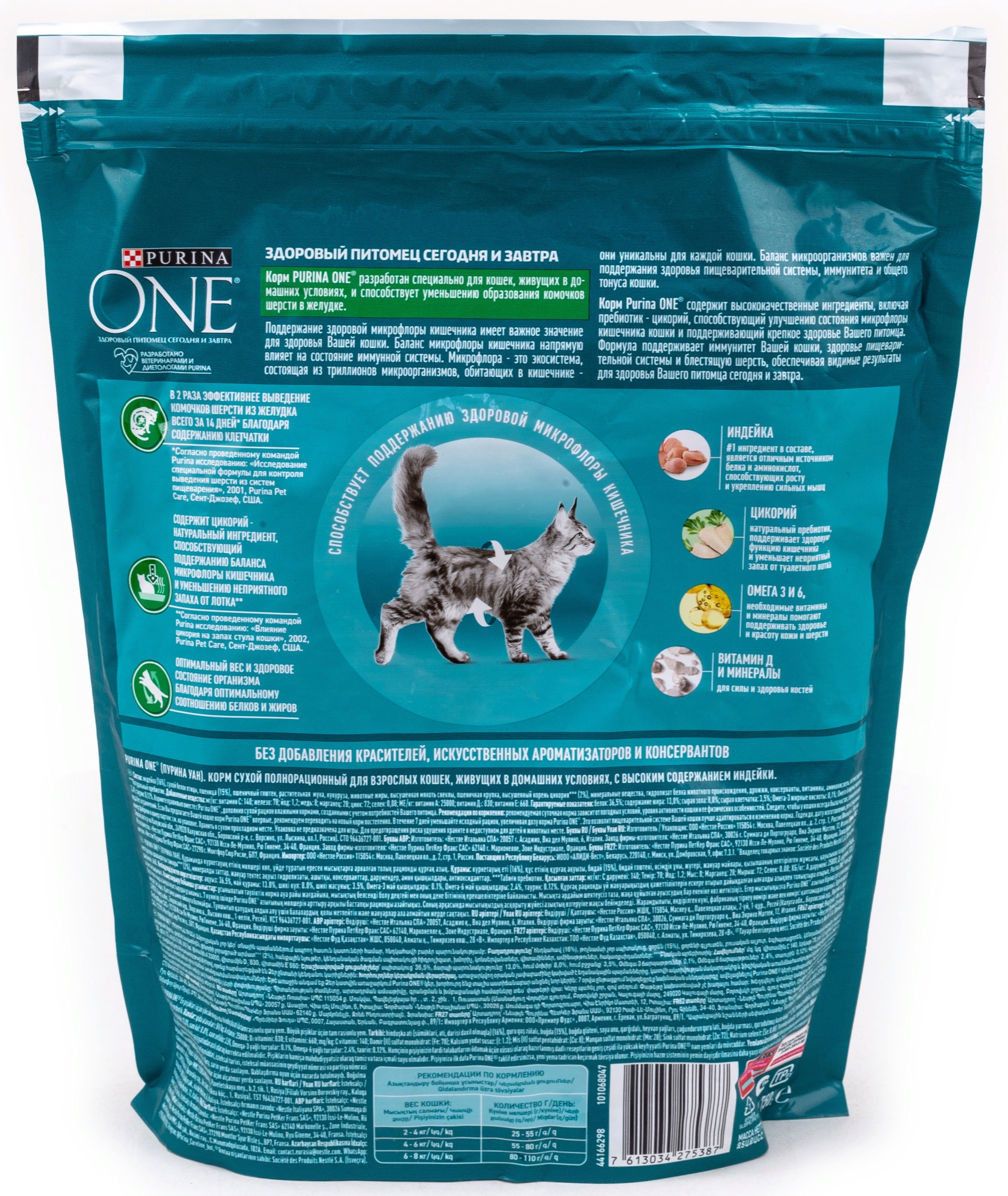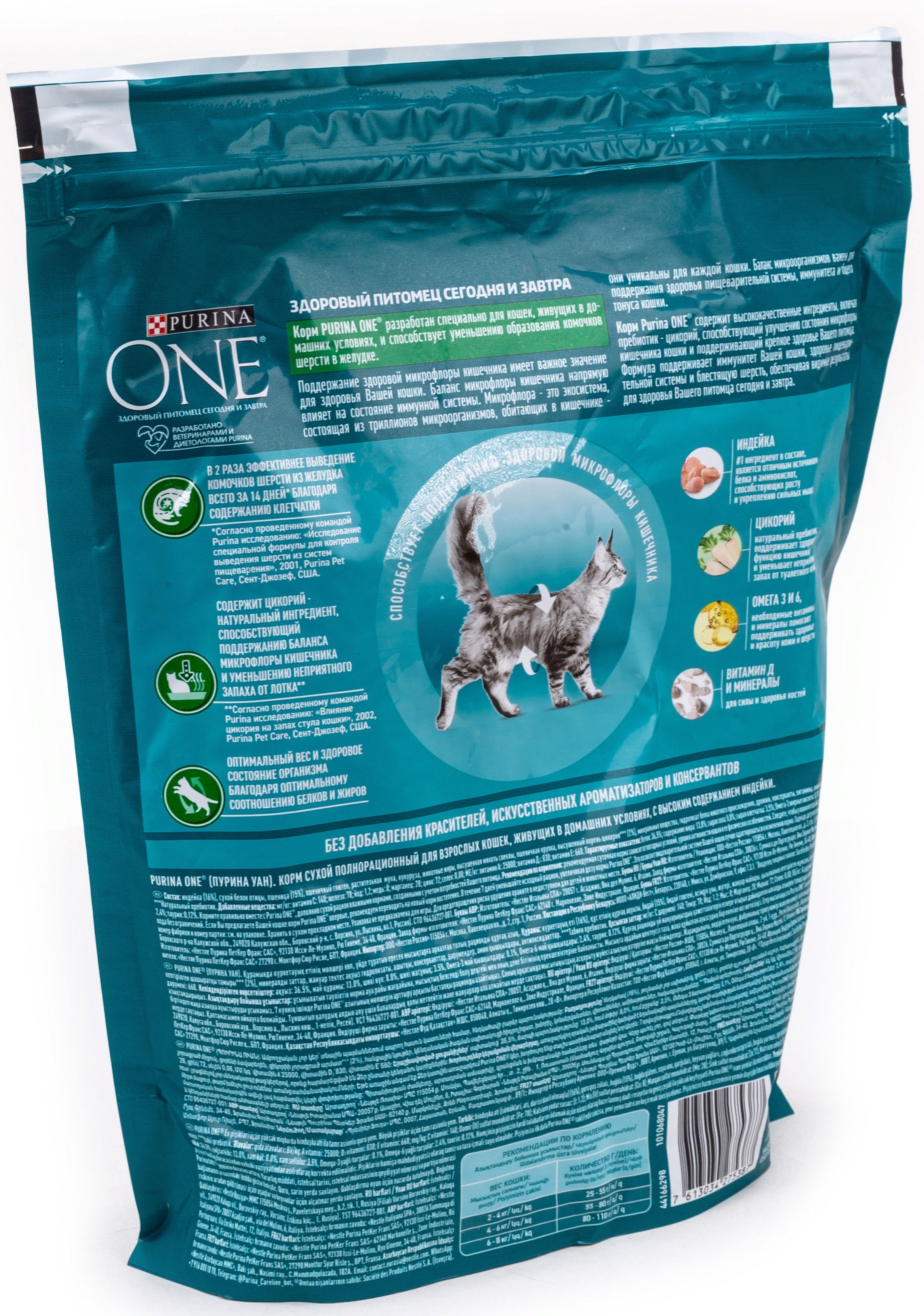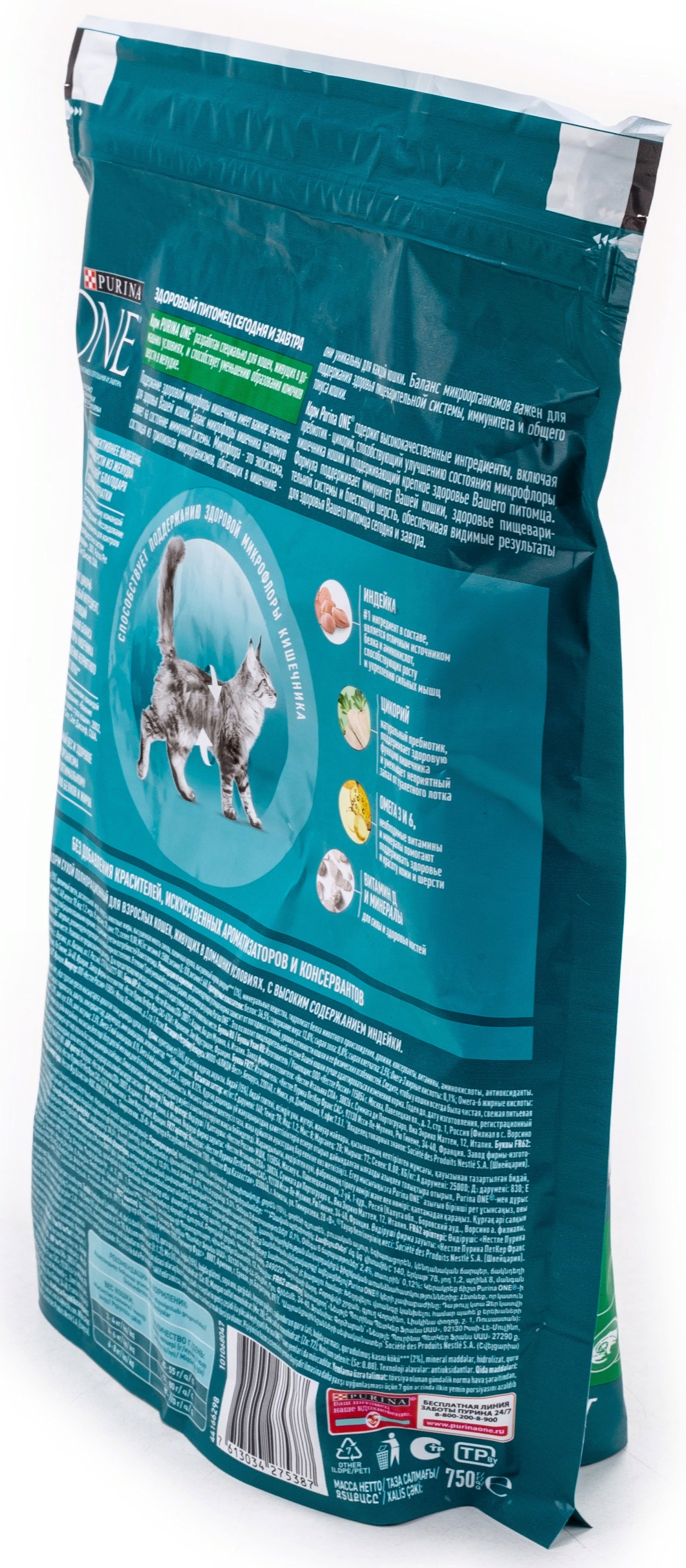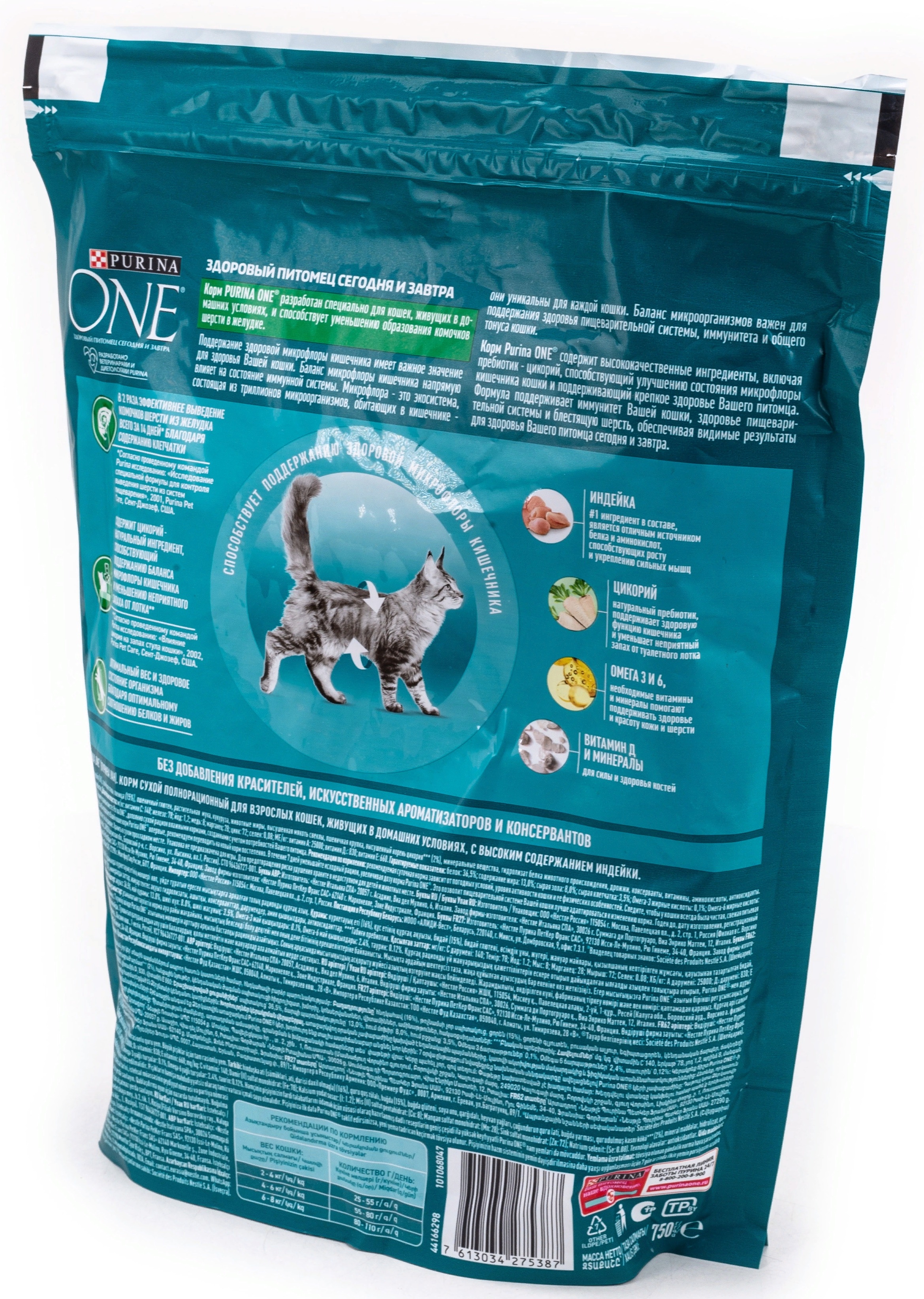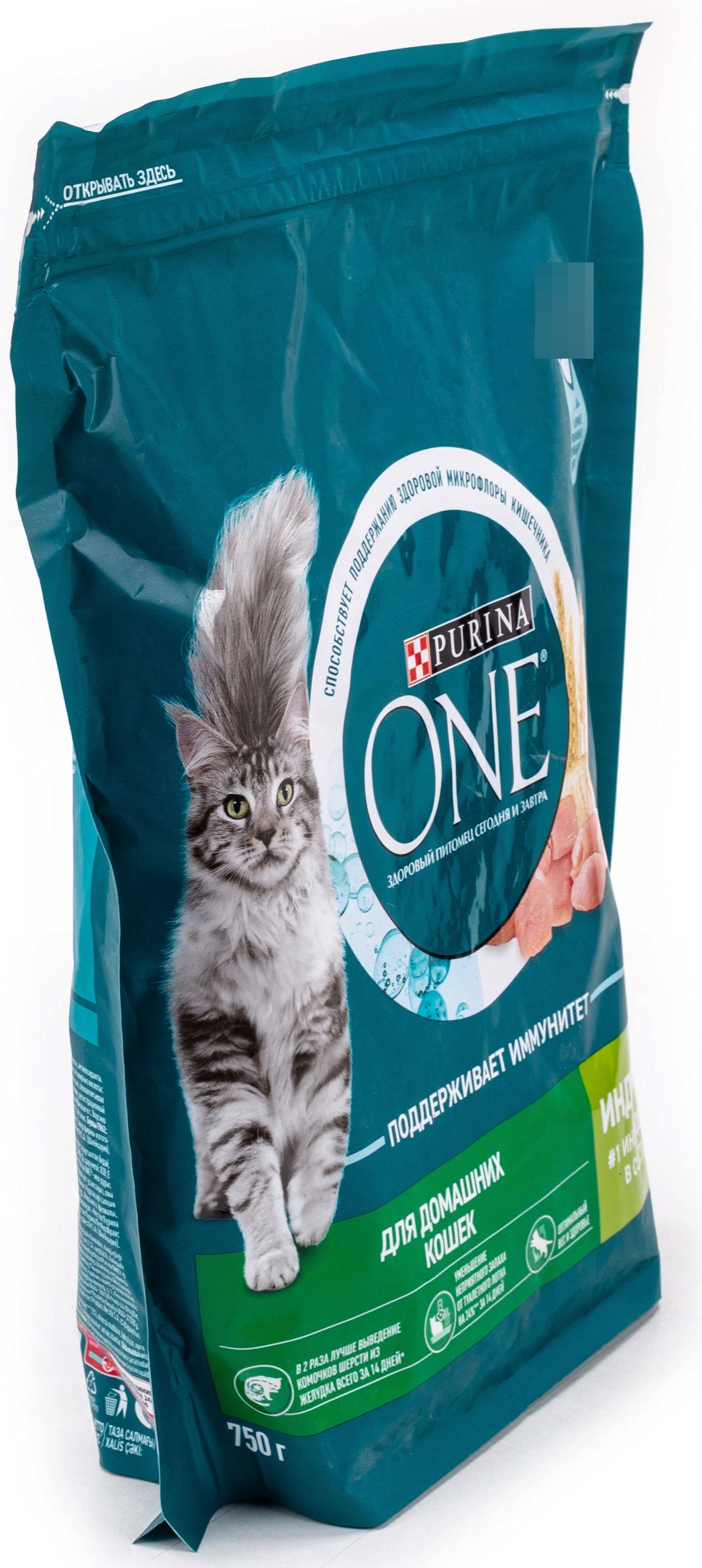 Корм сухой для кошек Purina One / Пурина Ван c индейкой и цельными злаками, хрустящие гранулы, 750г / зоотовары