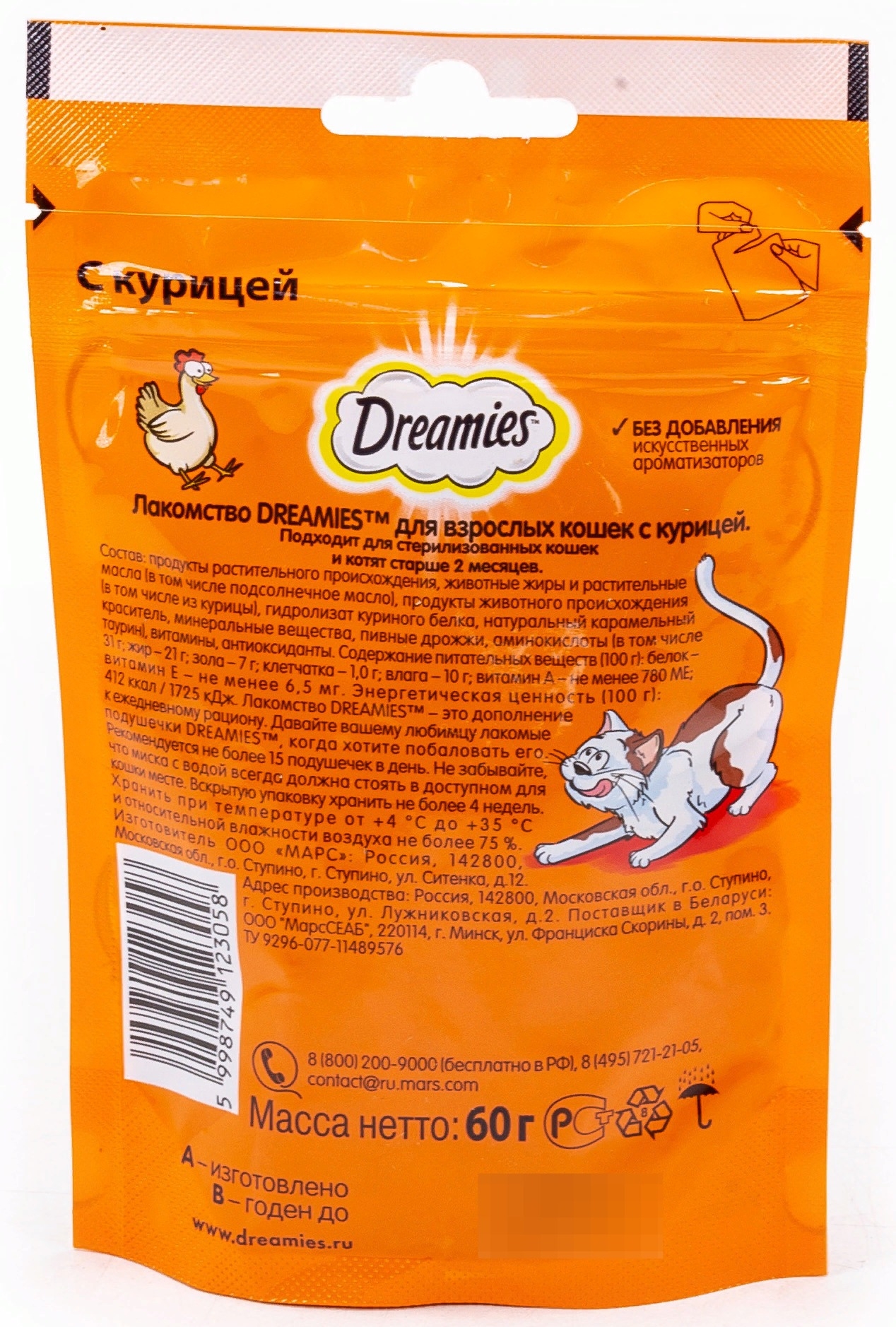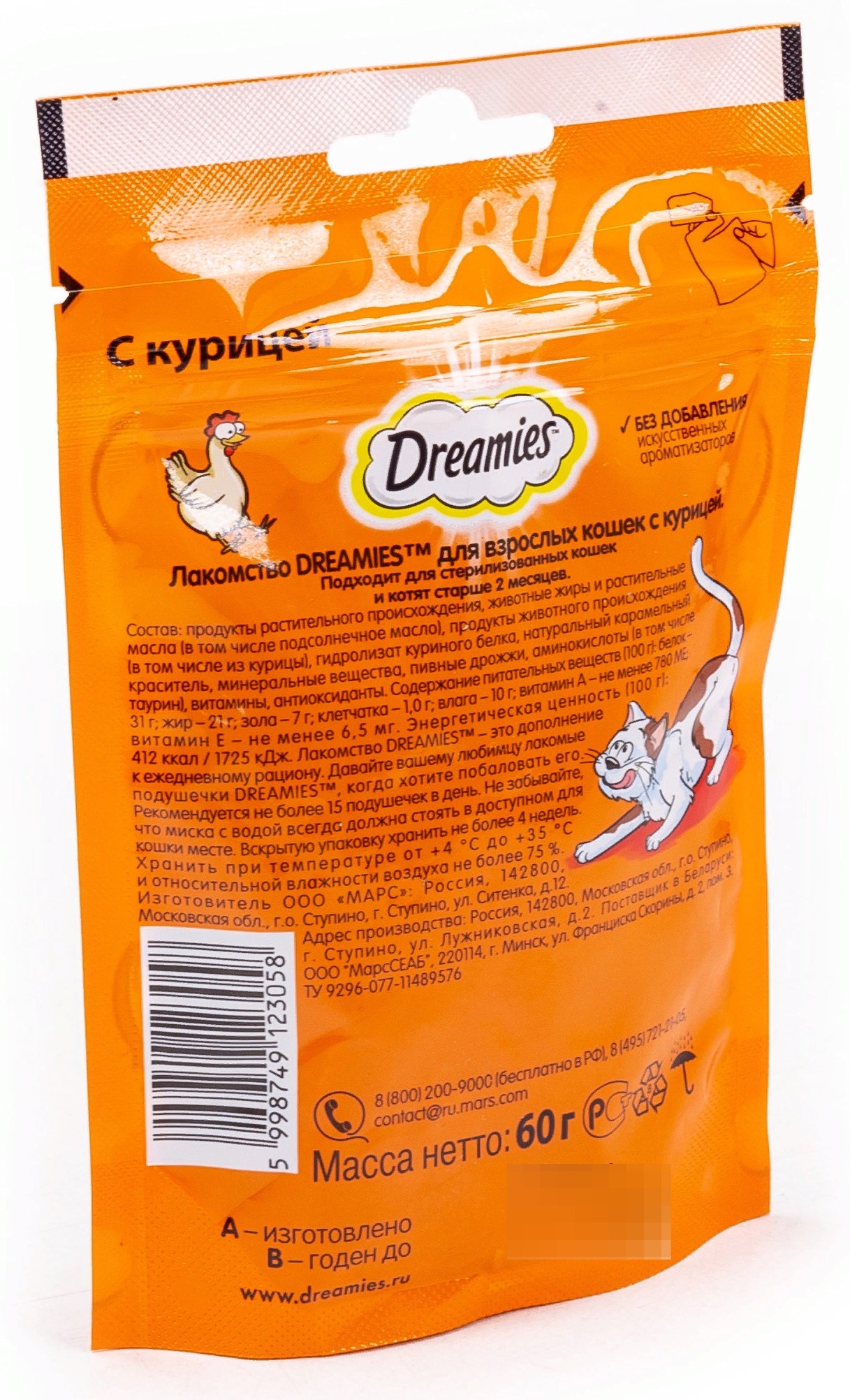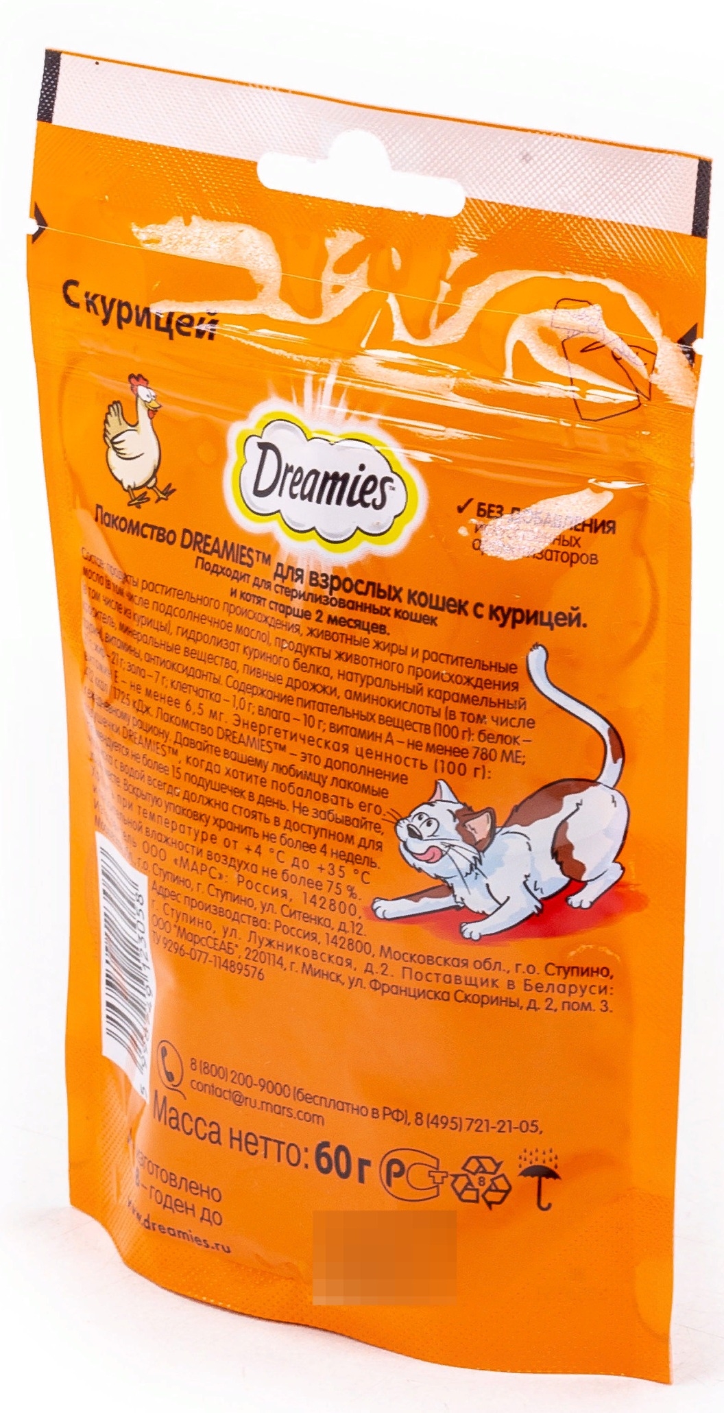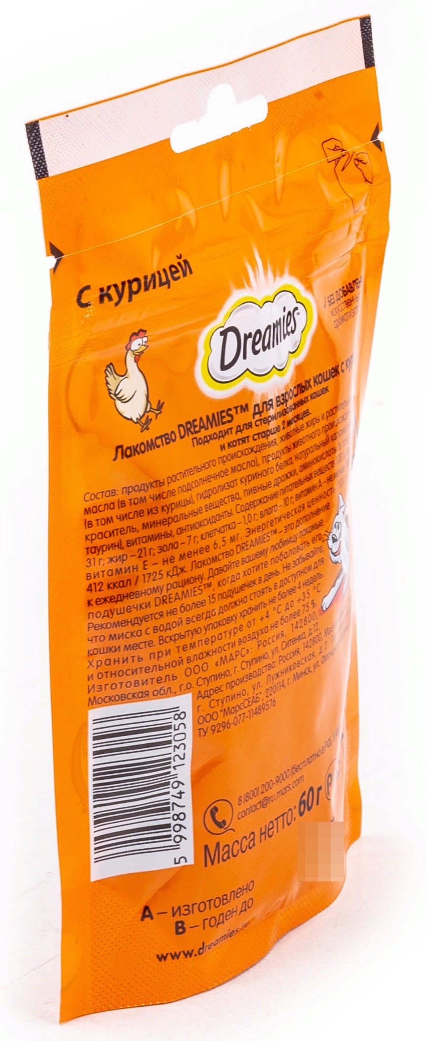 Лакомство DREAMIES реализуется в индивидуальной упаковке.