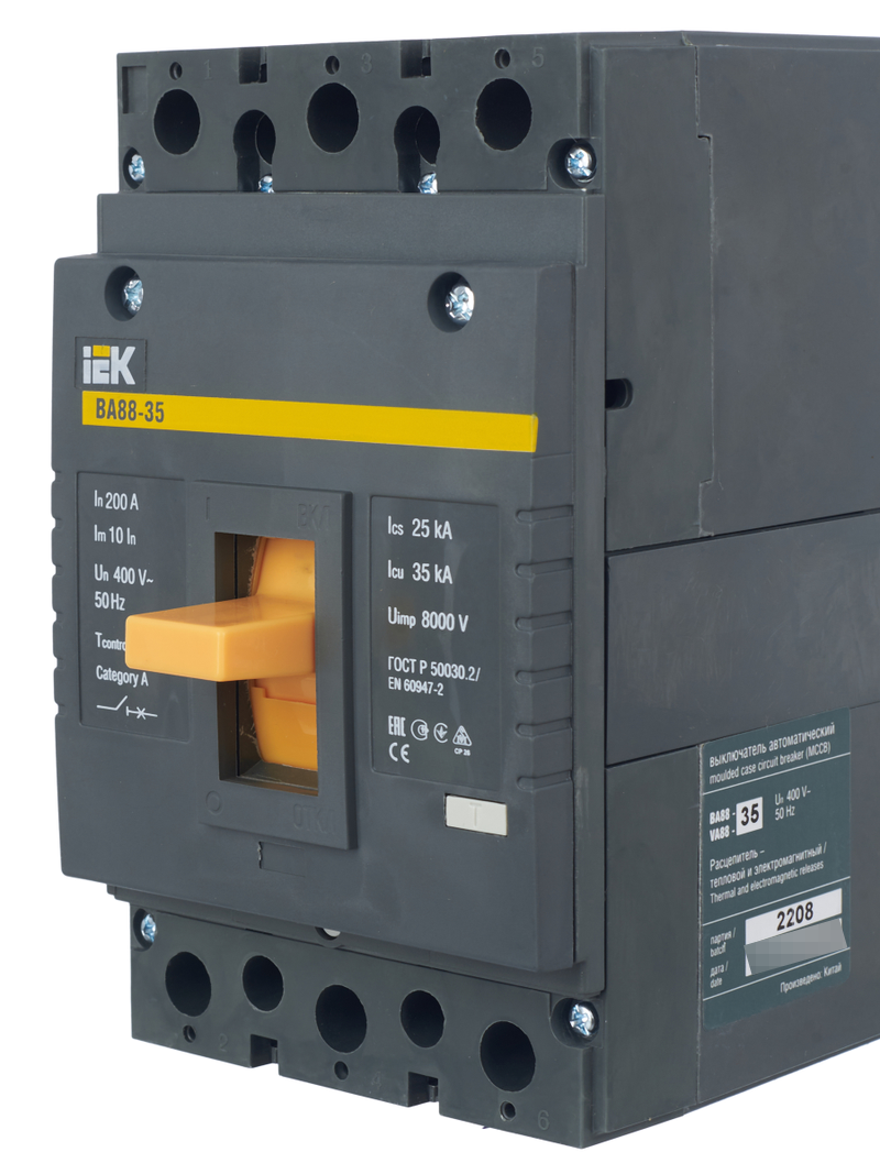 Автоматические выключатели ВА88 предназначены для проведения тока в нормальном режиме и отключения тока при коротких замыканиях, перегрузке, недопустимых снижениях напряжения, а также для оперативных включений и отключений участков электрических цепей и рассчитаны для эксплуатации в электроустановках с номинальным рабочим напряжением до 400 В и на номинальные токи от 12,5 до 1600 А.