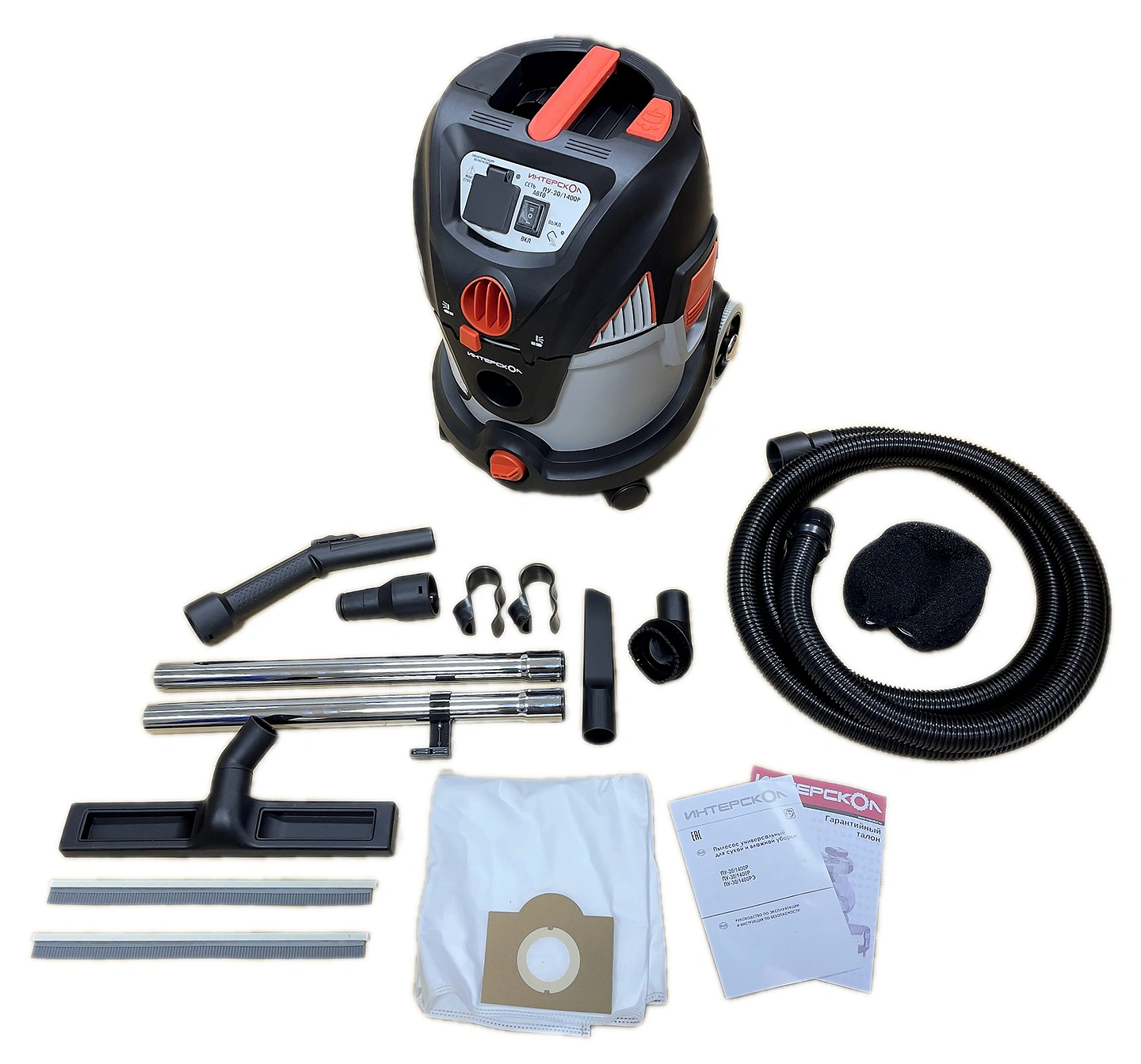 - Промышленный пылесос Интерскол ПУ-20/1400Р с шлангом, сухая и влажная уборка, система циклон, объем бака 20л, 1400Вт - 1шт.