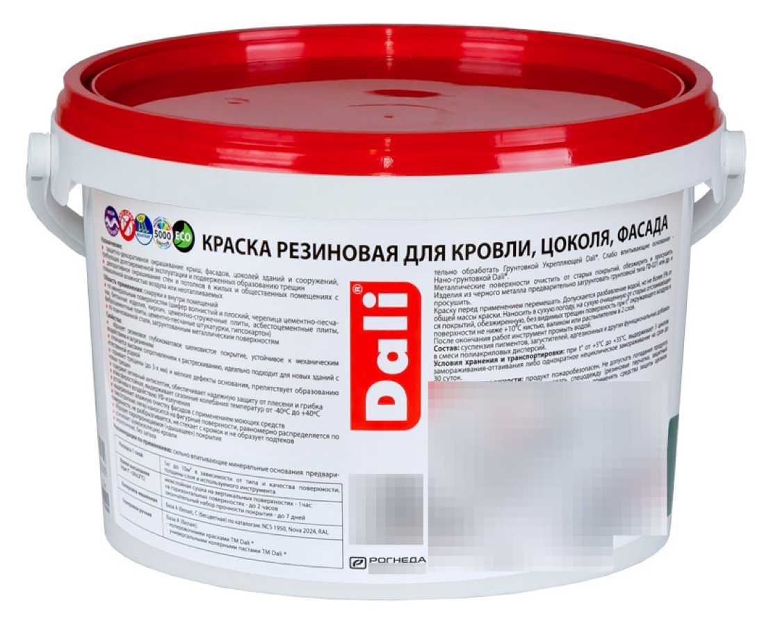 Фасадная краска Dali / Дали резиновая, для кровли, цоколя и фасада, атмосферостойкая, акриловая, база С, 3кг / лакокрасочные материалы