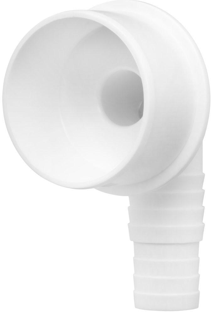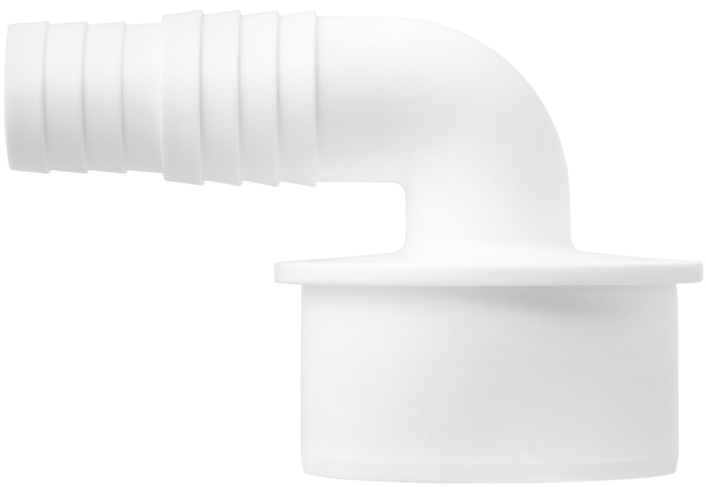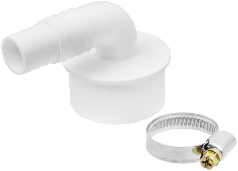 Комплект для подключения сливного шланга стиральных и посудомоечных машин: штуцер угловой с хомутом. Диаметр внешний 20/23/50 мм. Переходник помогает присоединить сливной шланг к фитингу внутренней канализации, что обеспечивает слив воды из бытовой техники.