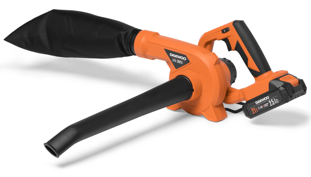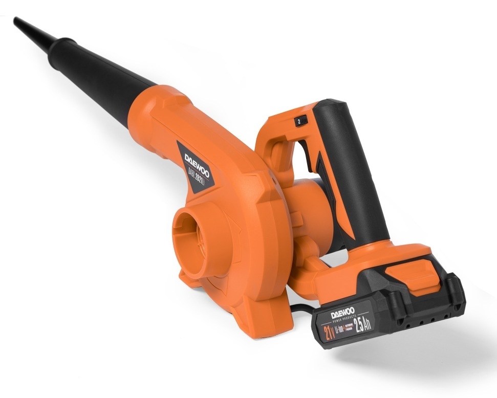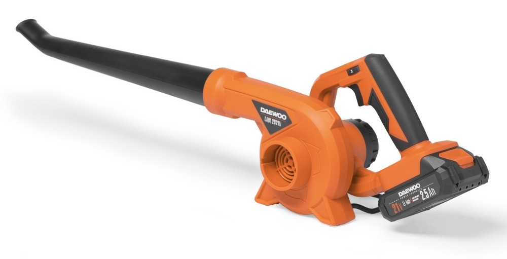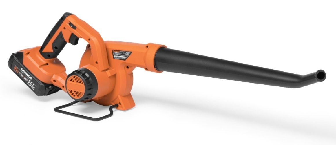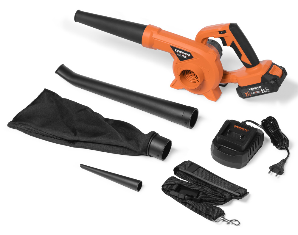 Воздуходувка аккумуляторная DAEWOO / Дэу DABL 2821Li SET для быстрой и простой уборки территории, цвет оранжевый, Li-Ion, 2.5А/ч, 650м³/ч, 75м/с / садовая техника