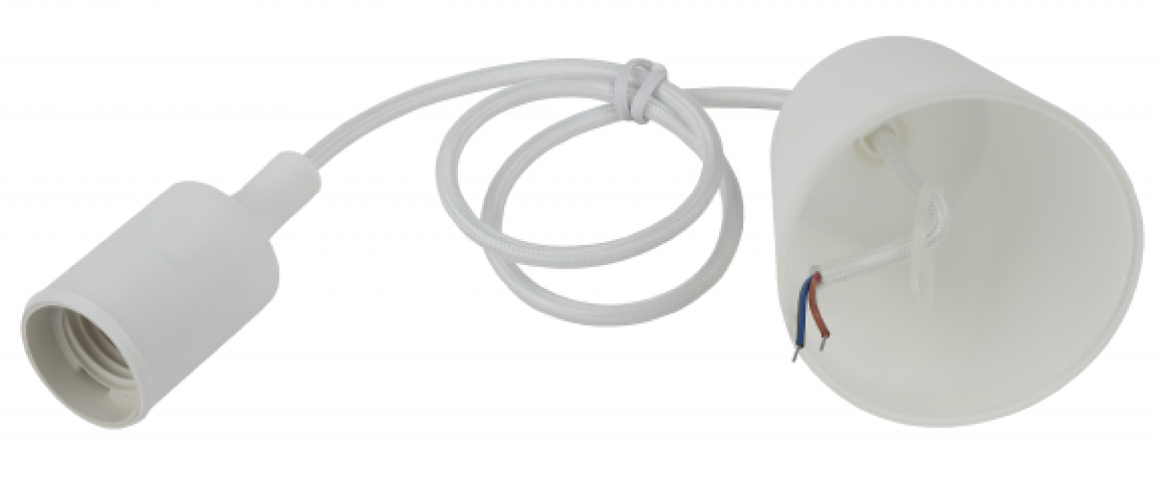 Патрон с подвесом, длина провода 80 см, изготавливается из термостойкого пластика, материал химически устойчивый к агрессивным средам. Обладает высокой прочностью и теплостойкостью, не обладает способностью выдерживать высокие температуры нагрева, поэтому его чаще всего используют для ламп накаливания мощностью не более 60 Вт.