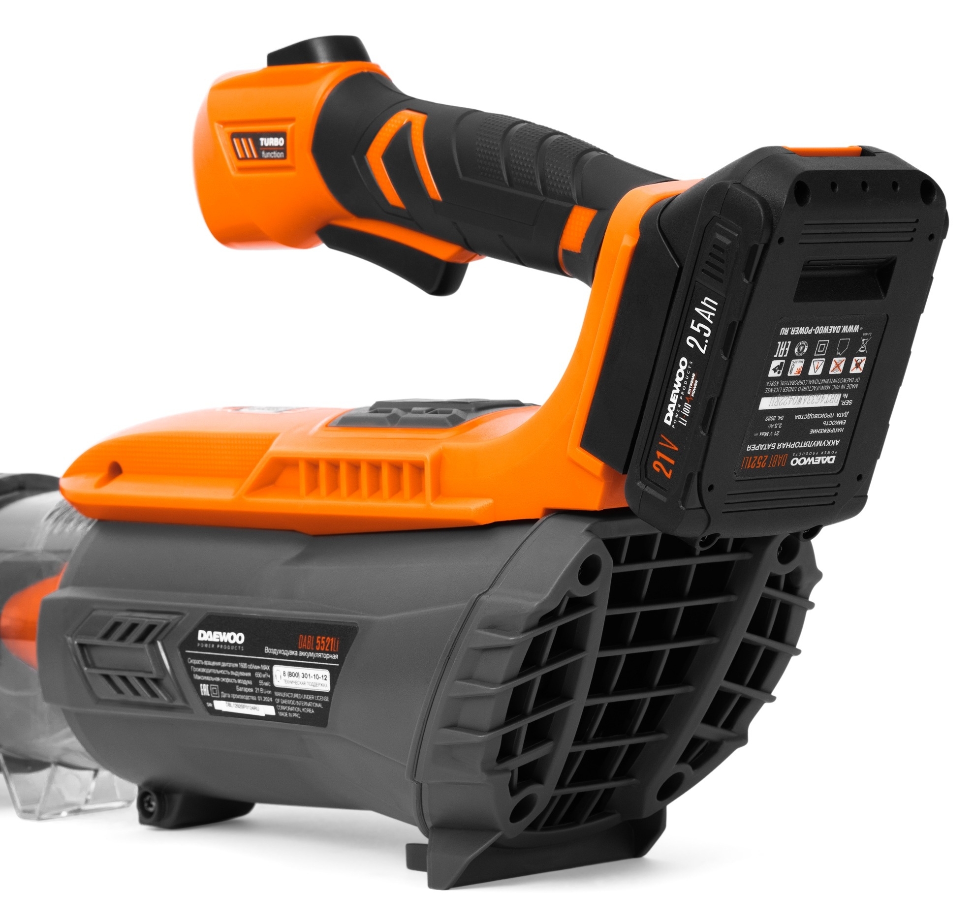 Воздуходувка аккумуляторная DAEWOO / Дэу DABL 5521Li SET для быстрой и простой уборки территории, цвет серый, Li-Ion, 2.5А/ч, 650м³/ч, 44.55м/с / садовая техника