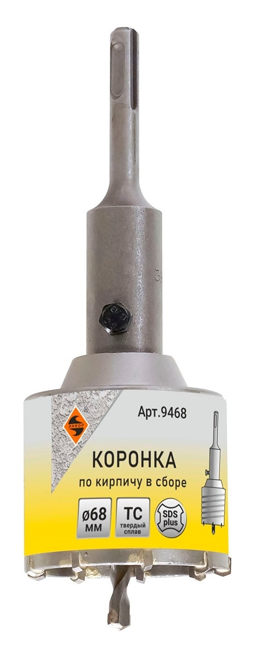 Коронка твердосплавная Энкор по бетону, кирпичу, в сборе, из металла, SDS-plus, 68мм / инструменты