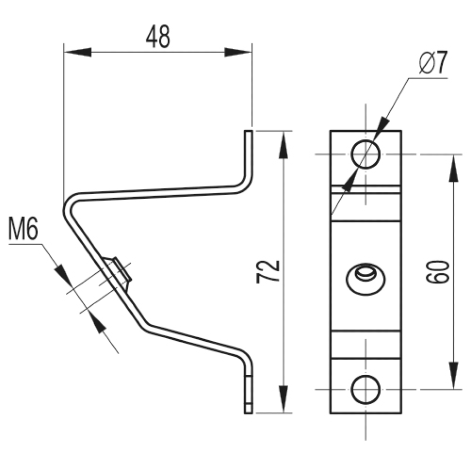 Кронштейн предназначен для установки рейки на определенном уровне под углом 45.