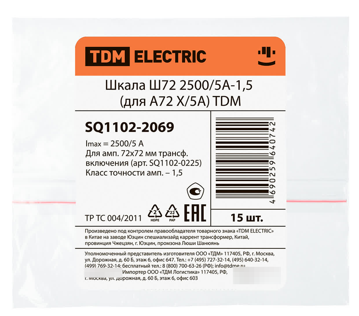 Шкала измерений TDM Electric Ш72 2500/5А-1.5 реализуется в индивидуальной упаковке.
