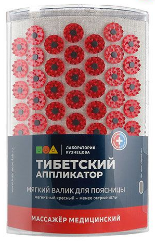 - Массажный коврик Лаборатория Кузнецова Тибетский аппликатор мягкий валик для поясницы, магнитный красный - 1 шт.