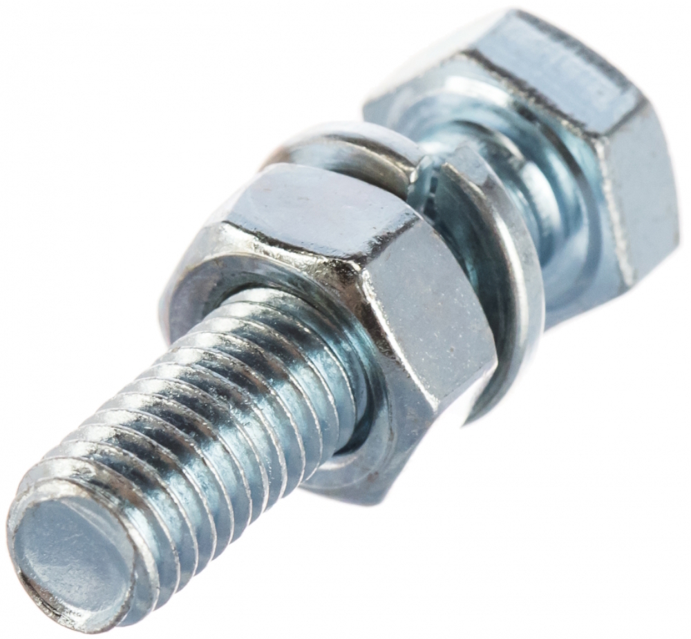 Болт Стройбат с гайкой и шайбой метрический из оцинкованной стали, DIN933, 8×50мм, 3шт. / крепежАрт. 1395В наличии120 ₽/шт