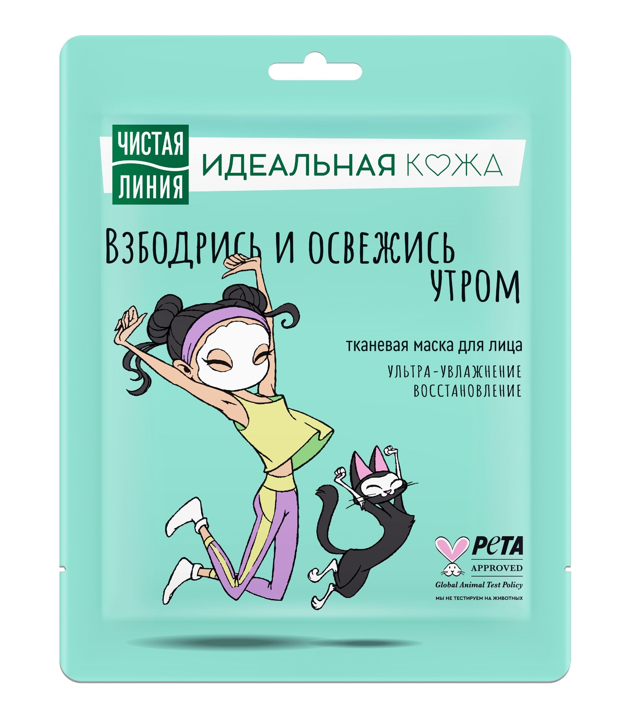 Чистая Линия Тканевая маска для лица ультра-увлажнение и восстановление с аллантоином, мятой и алоэ вера 19.7г