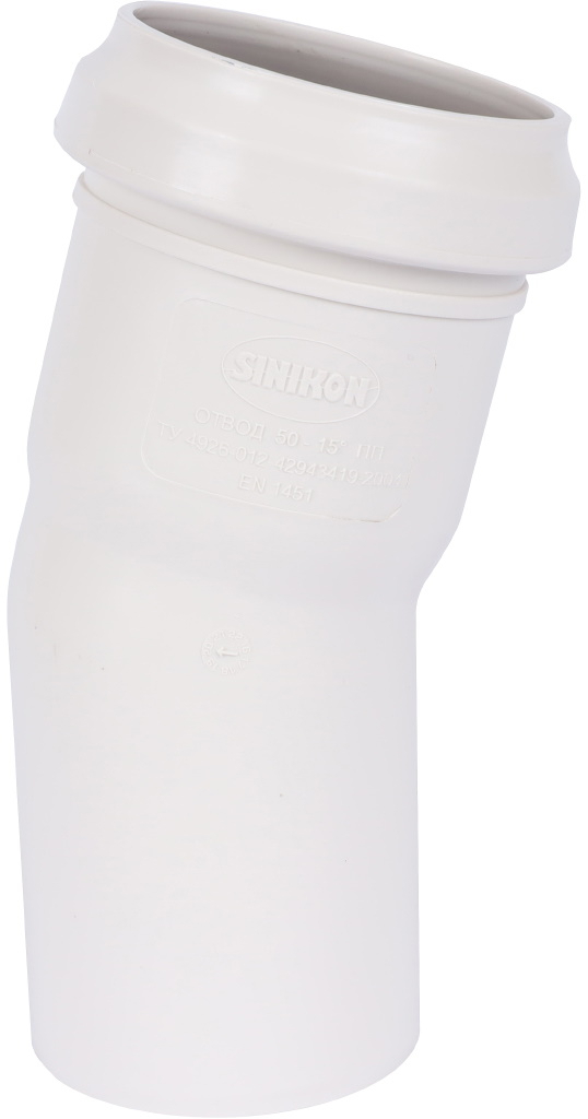 Отвод канализационный Sinikon / Синикон КОМФОРТ раструбный, полипропиленовый, белый, d50мм, 15 / сантехника