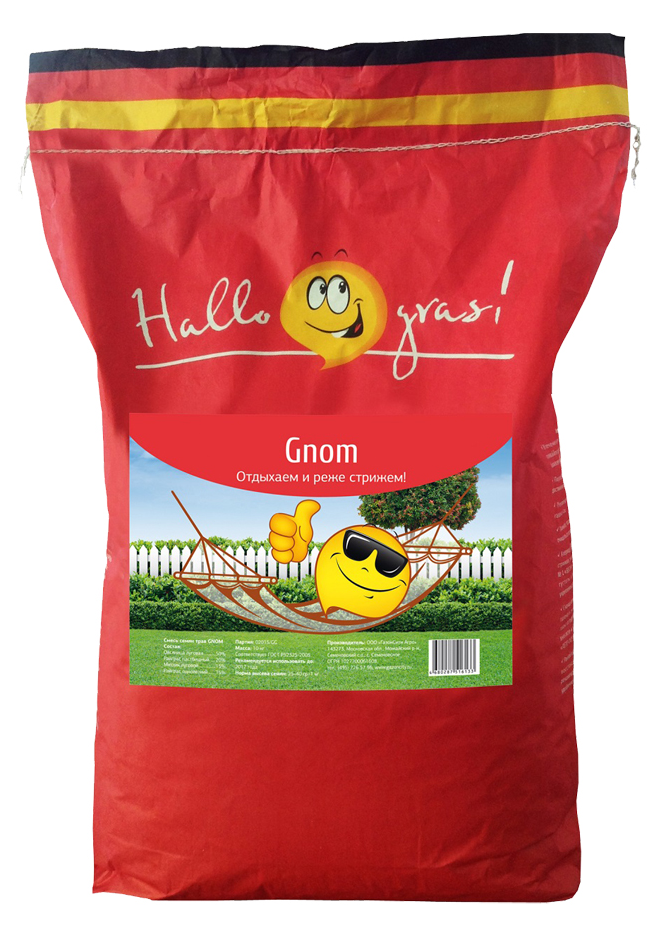 Семена газона GNOM серии «Hallo, gras!» — травосмесь для создания относительно медленно растущего газона, что позволяет сократить частоту стрижек. Отдыхаем и реже стрижем! Низкорослый вид овсяницы (овсяницы обычно обладают быстрым ростом) создает эффект замедленного роста всего газона, в то время как райграсы со средней скоростью отрастания, но высокой плотностью, делают газон густым. Серия семян газона «Hallo, gras!» — это сочетание немецких и российских трав, каждая из которых обладает определенными свойствами для создания качественного и устойчивого газона в различных климатических условиях.