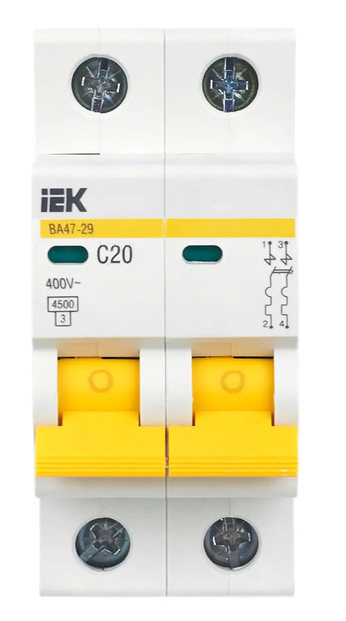 Автоматический выключатель IEK / ИЭК ВА47-29, 2Р 20А характеристика С 4.5кА, MVA20-2-020-C / электроавтомат
