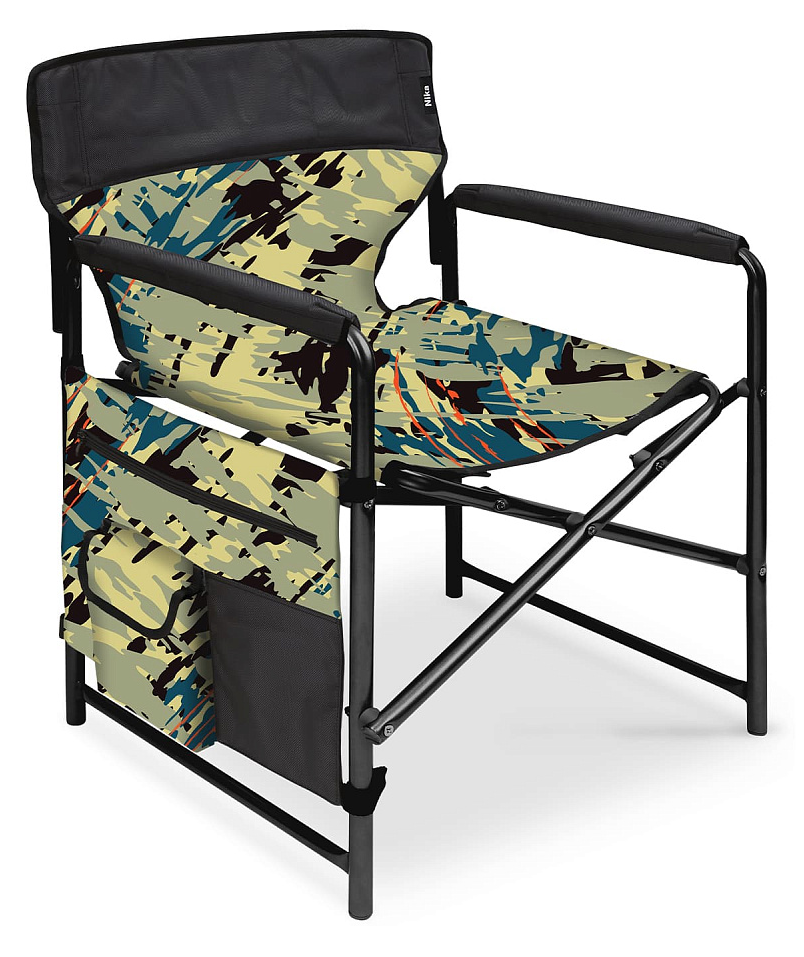 Кресло складное Nika / Ника 2 с карманом, металлическая труба, ткань с водоотталкивающей пропиткой, цвет камуфляж, саванна черный, до 120кг, 500х560х860мм / товары для пикника