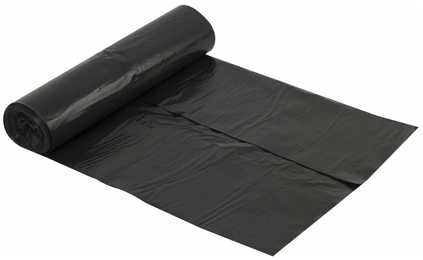 Изделия выполнены из полиэтилена высокого давления. Материал отличается надежностью, выдерживает острые углы и не протекает. Количество в рулоне — 10 шт. Объем — 200 л. Цвет — черный. Толщина — 60 мкм.