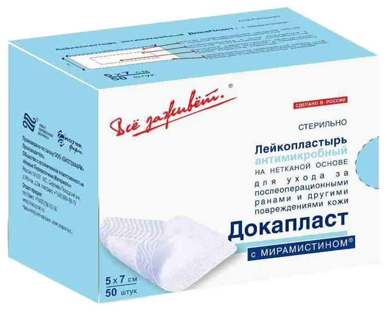 Лечебный антимикробный стерильный с мирамистином на нетканой основе пластырь Всё заживёт. ДокаПласт белого цвета незаметен на коже и его можно использовать практически на любых участках тела.