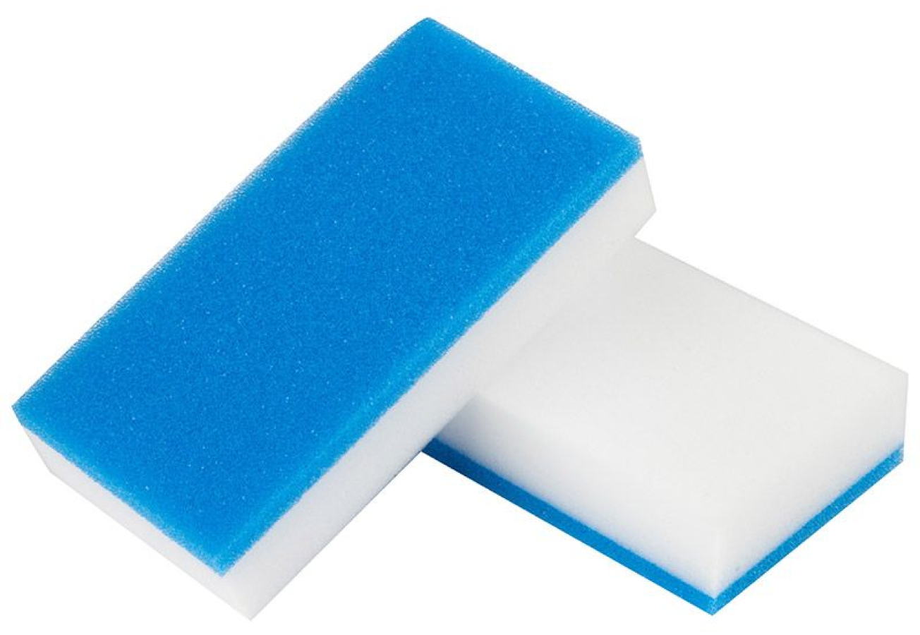 Эффективно удаляет любые виды загрязнений с любой поверхности! Необходимо смочить и аккуратно отжать губку между ладонями, загрязнения чистить наподобие стирательной резинки — аккуратно, с легким нажимом, краем губки. Единственное ограничение — нельзя чистить поверхности, которые будут соприкасаться с продуктами питания.