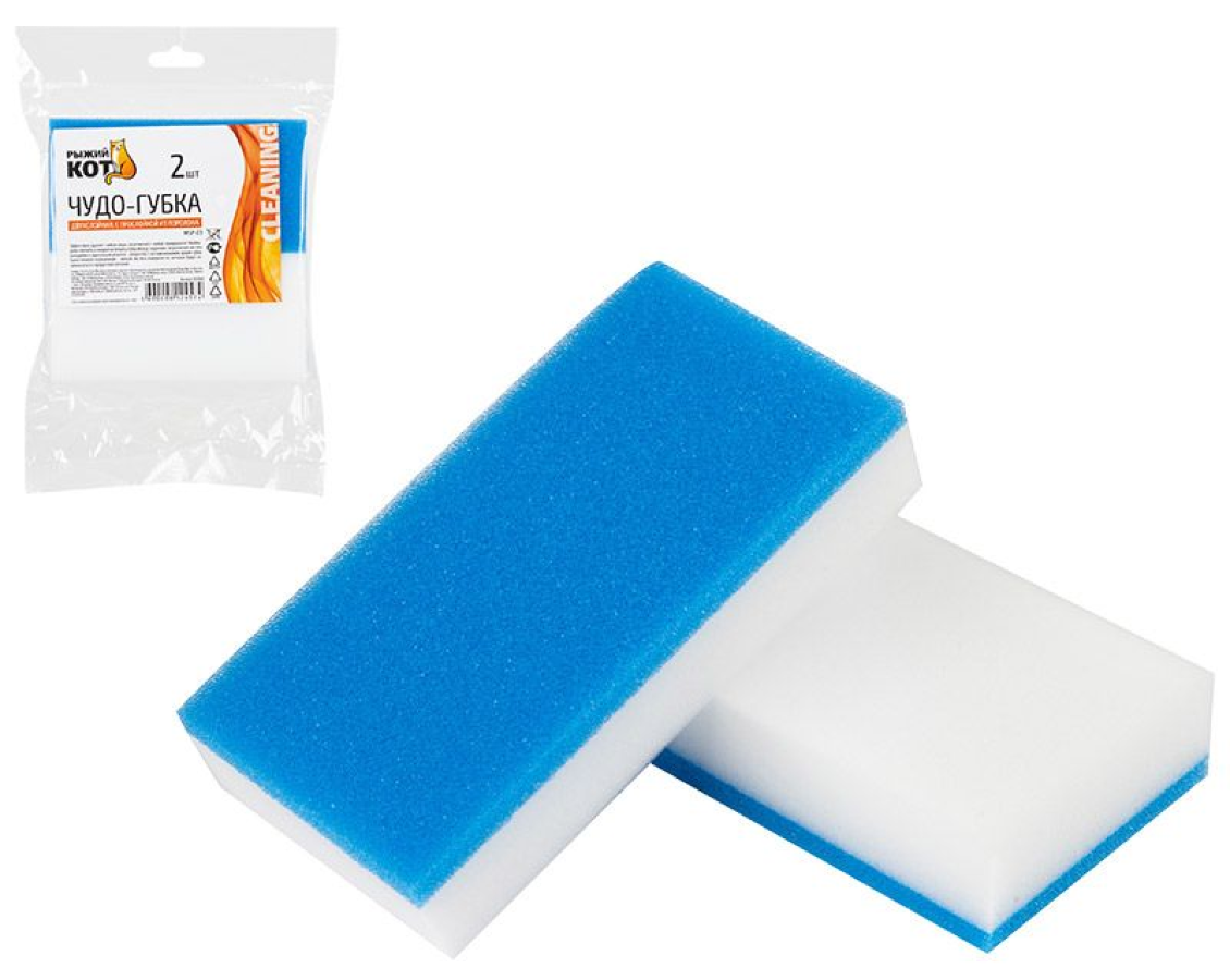 Чудо-губка для уборки Рыжий кот универсальная, двухслойная, из меламина и поролона, 11.5х6х2.3см, в упаковке 2шт. / хозяйственные товары