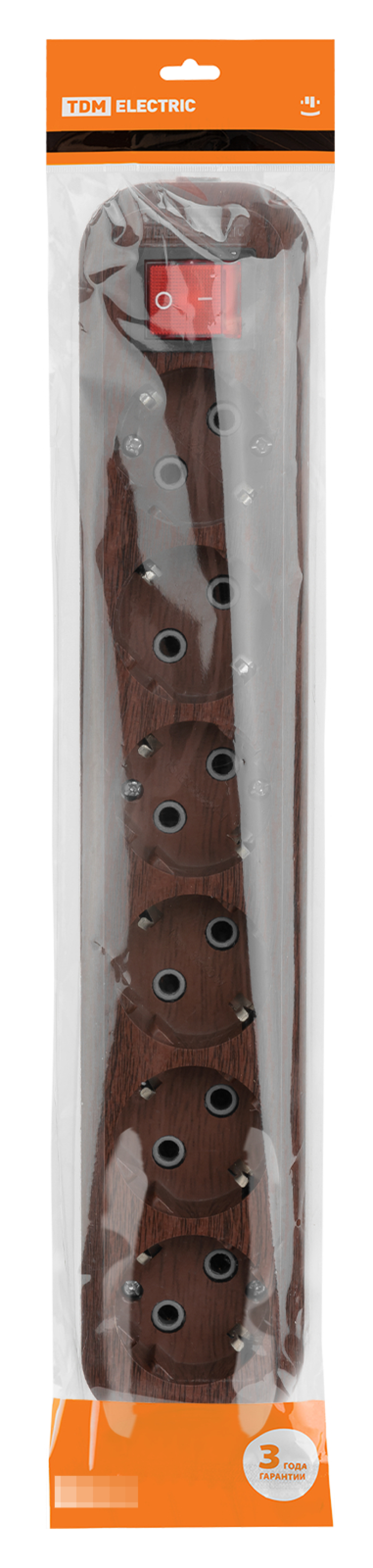 - Блок розеток TDM Electric Эко, 6 гнезд 16А 3.5кВт с заземлением и выключателем, бук SQ1806-0072 - 1шт.