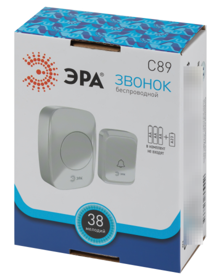 Звонок ЭРА C89 реализуется в индивидуальной упаковке. Выполнен в пластиковом корпусе.