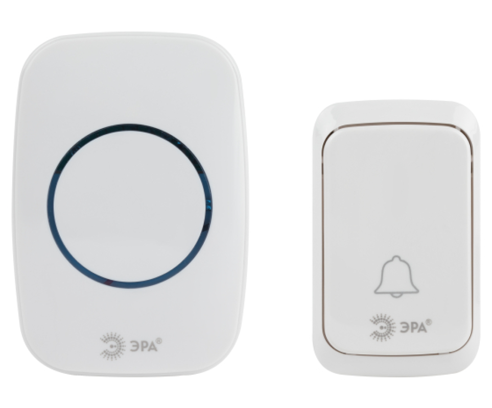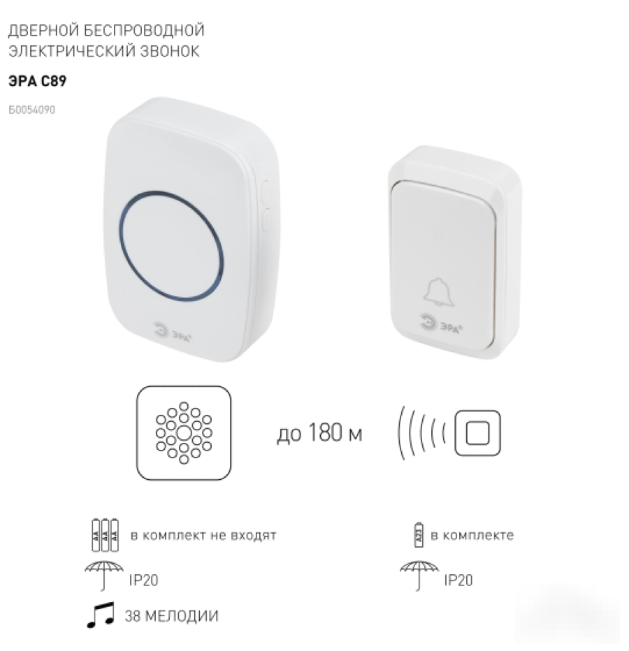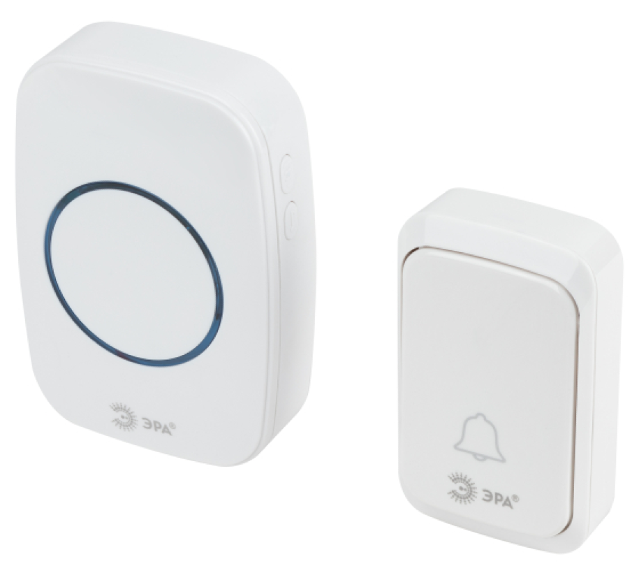 Звонок дверной беспроводной ЭРА C89 с 38 мелодиями, белый, IP20, 1 батарейка A23 и 3хААА, радиус действия 180м, Б0054090 / устройство для оповещения