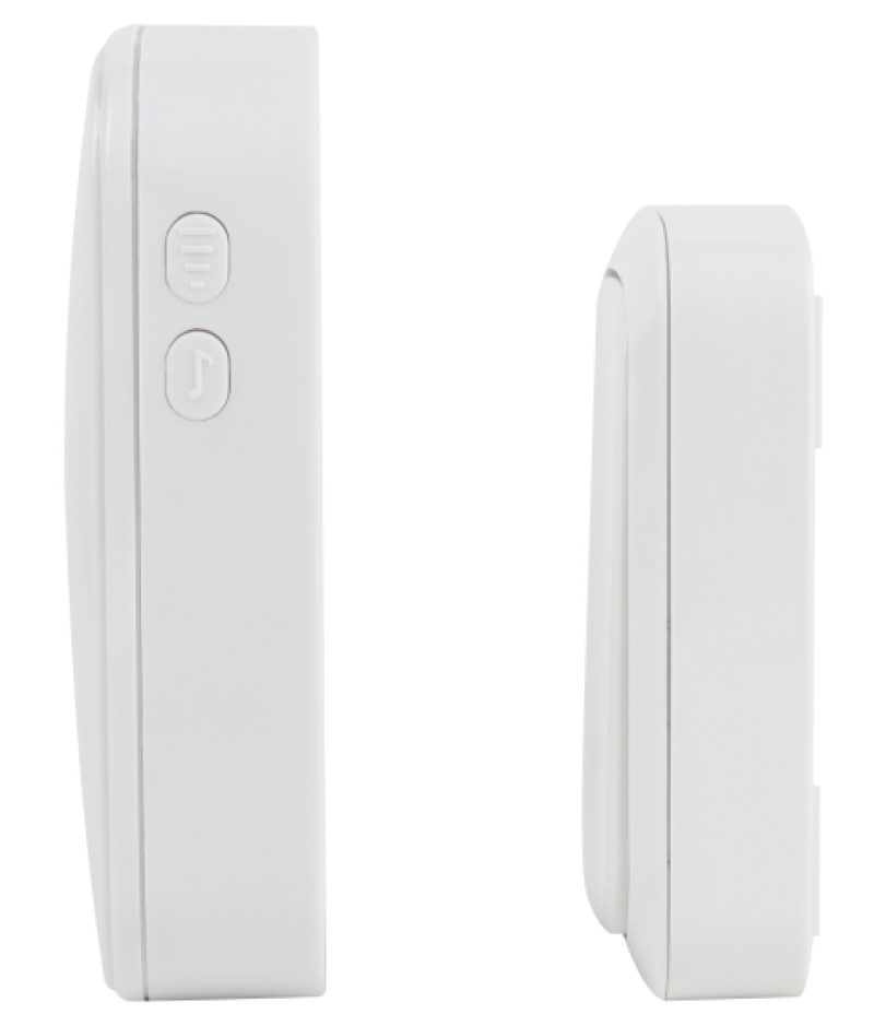 Корпус базового белого цвета, кнопка декорирована лаконичным синим ободком. Компактный и легкий звонок крепится двумя способами — на саморезы или самоклеящуюся основу, поставляемые в комплекте.