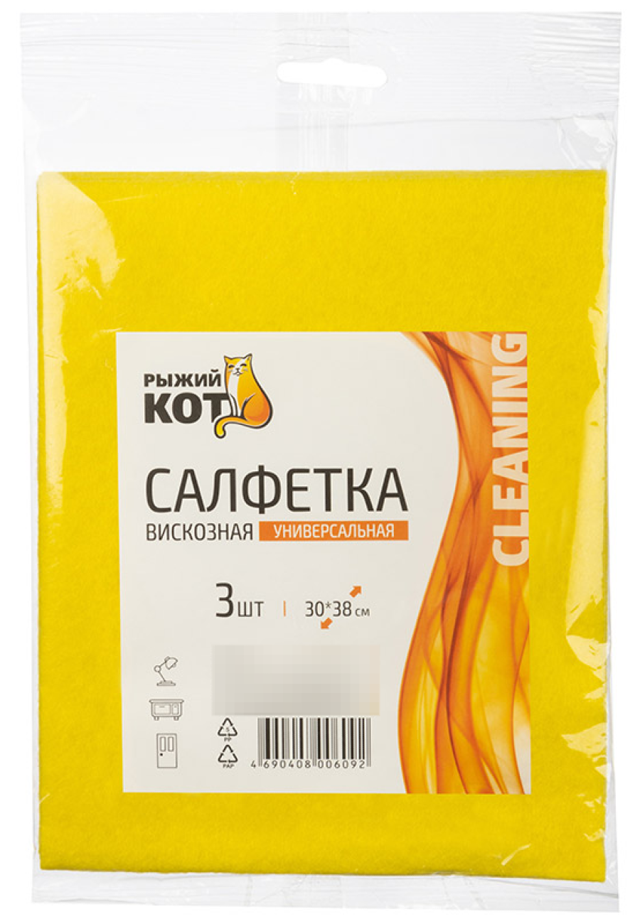 Салфетки для уборки Рыжий кот универсальные, вискозные, 30х38см, в упаковке 3шт. / хозяйственные товары