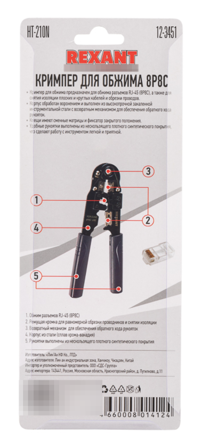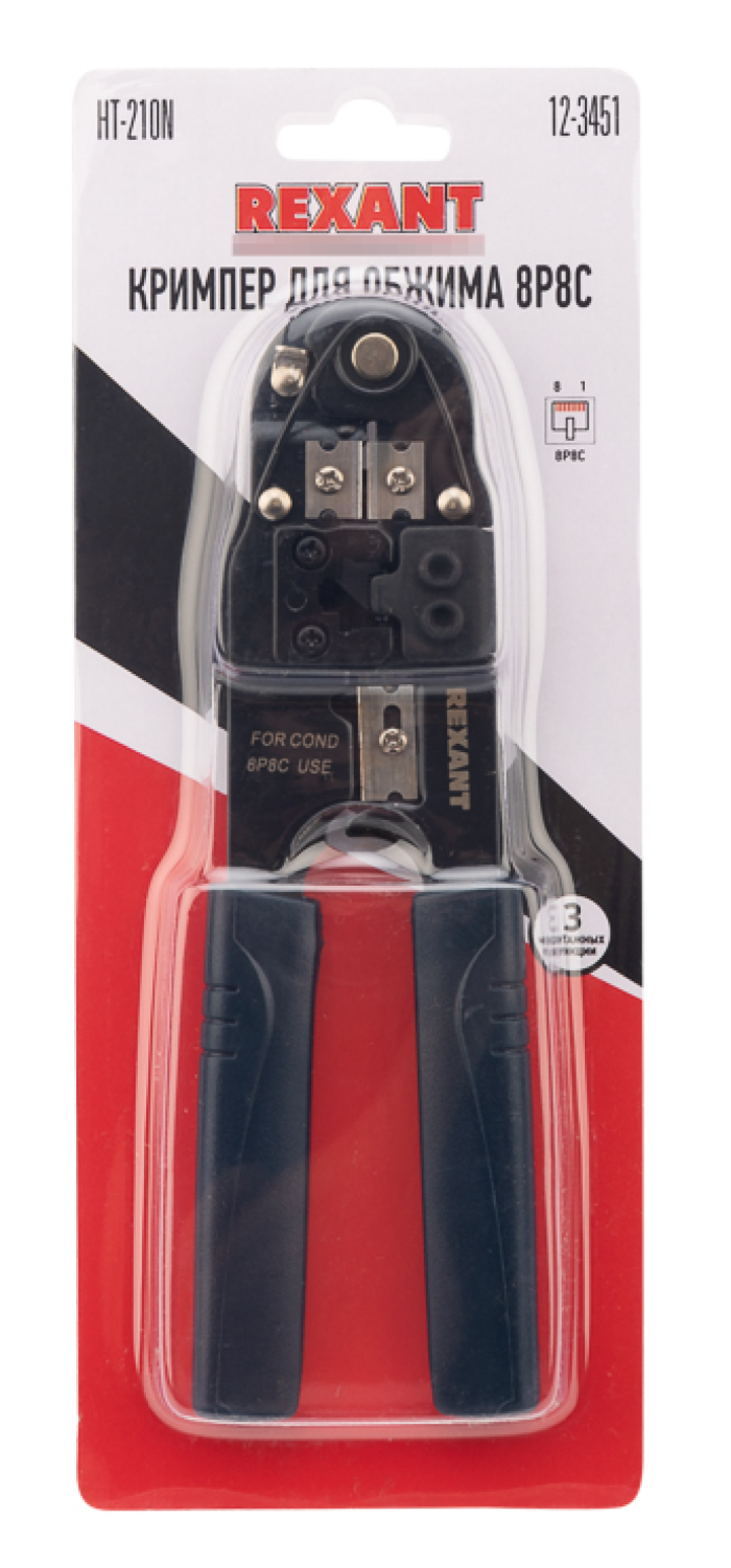 Пресс-клещи REXANT / Рексант HT-210N для обжима компьютерных и телефонных разъемов RJ-45, 11х3х27см / кримпер