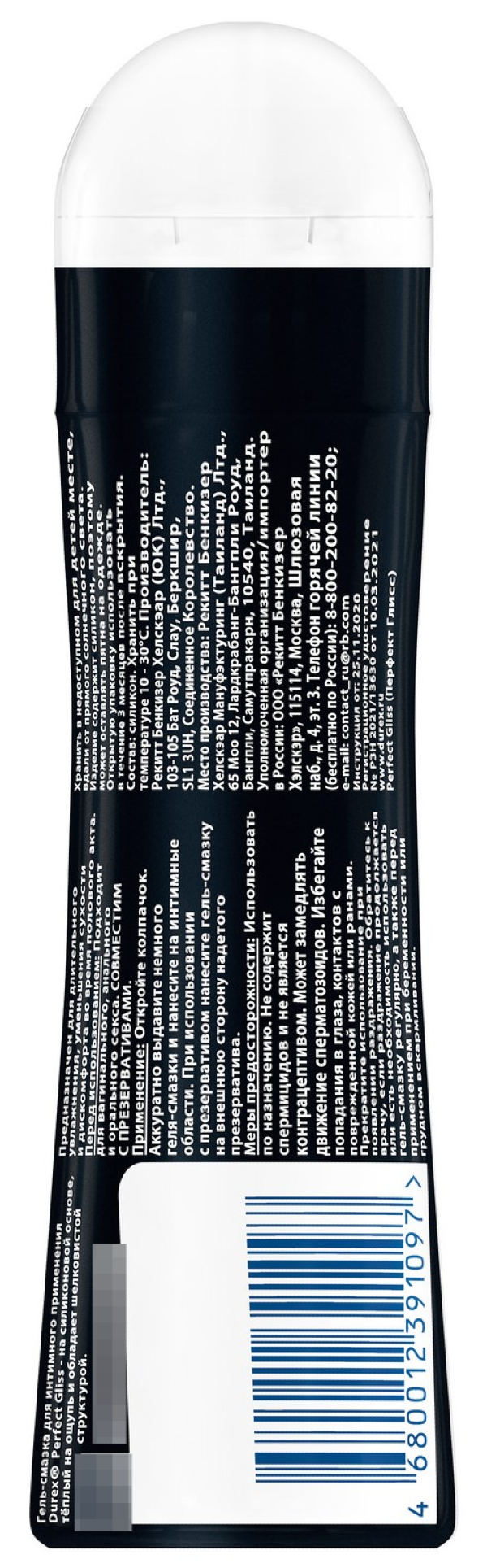 Лубрикант гель смазка Durex Perfect Gliss реализуется в индивидуальной упаковке — флаконе. Объем — 50 мл. В своем составе содержит силикон.