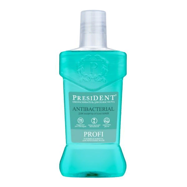 Профилактический ополаскиватель для полости рта President с хлоргексидином позволяет достичь максимальной защиты всей полости рта. President ополаскиватель для полости рта Antibacterial — оказывает противовоспалительное действие.