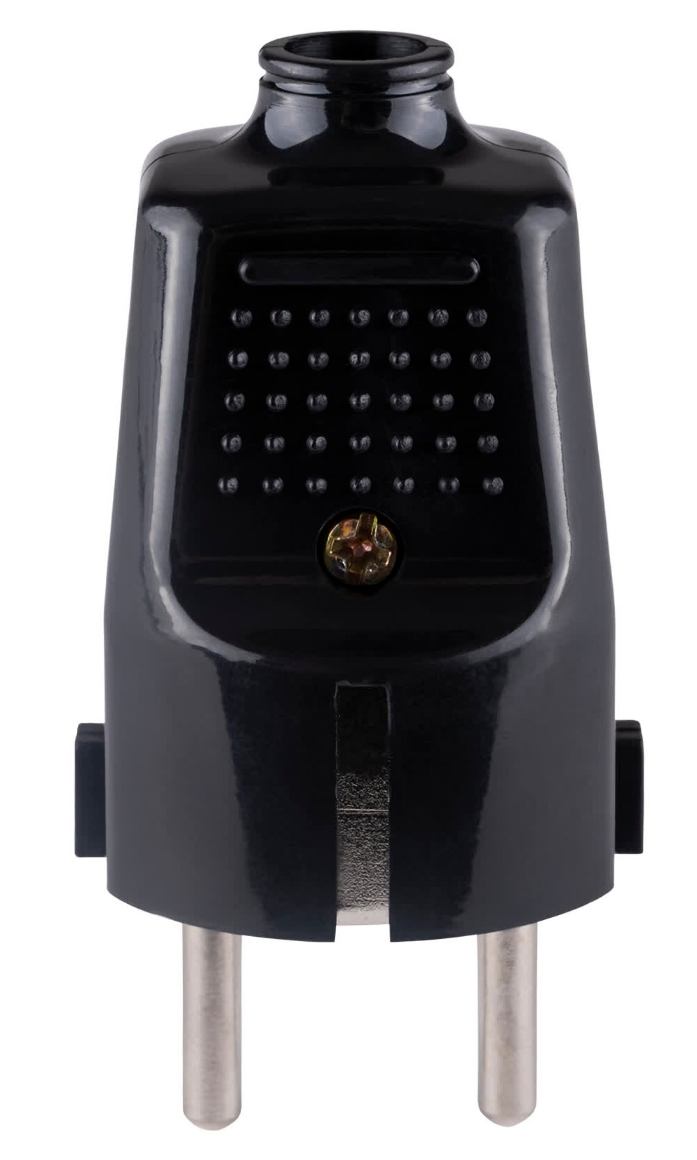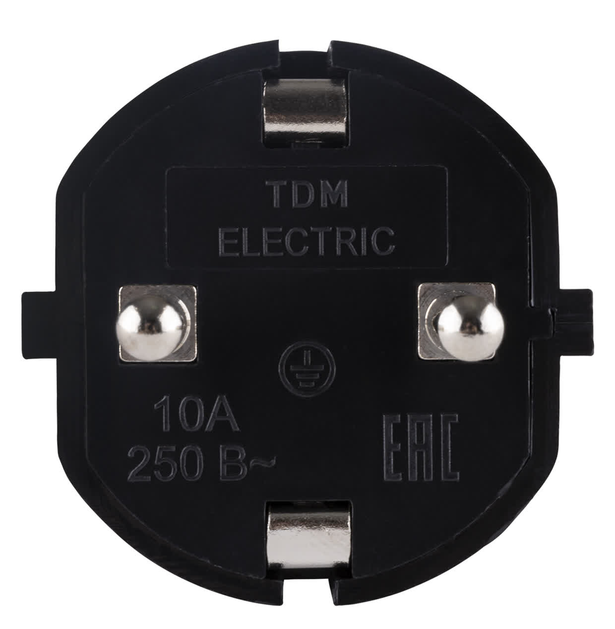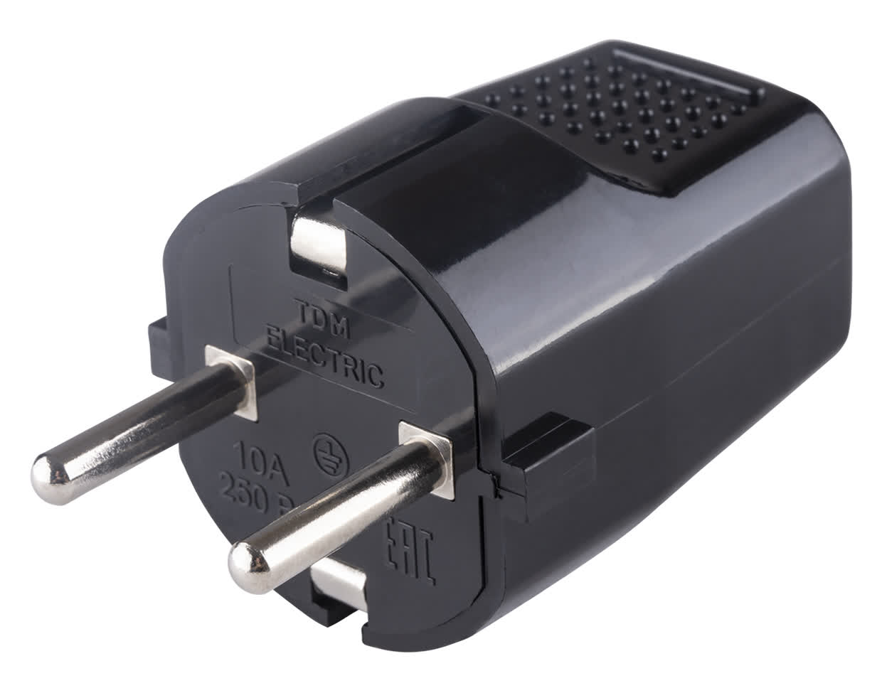 - Вилка электрическая TDM Electric прямая с заземляющими контактами из пластика, черная с перфорацией, степень защиты IP20, 250В, 10А - 1шт.