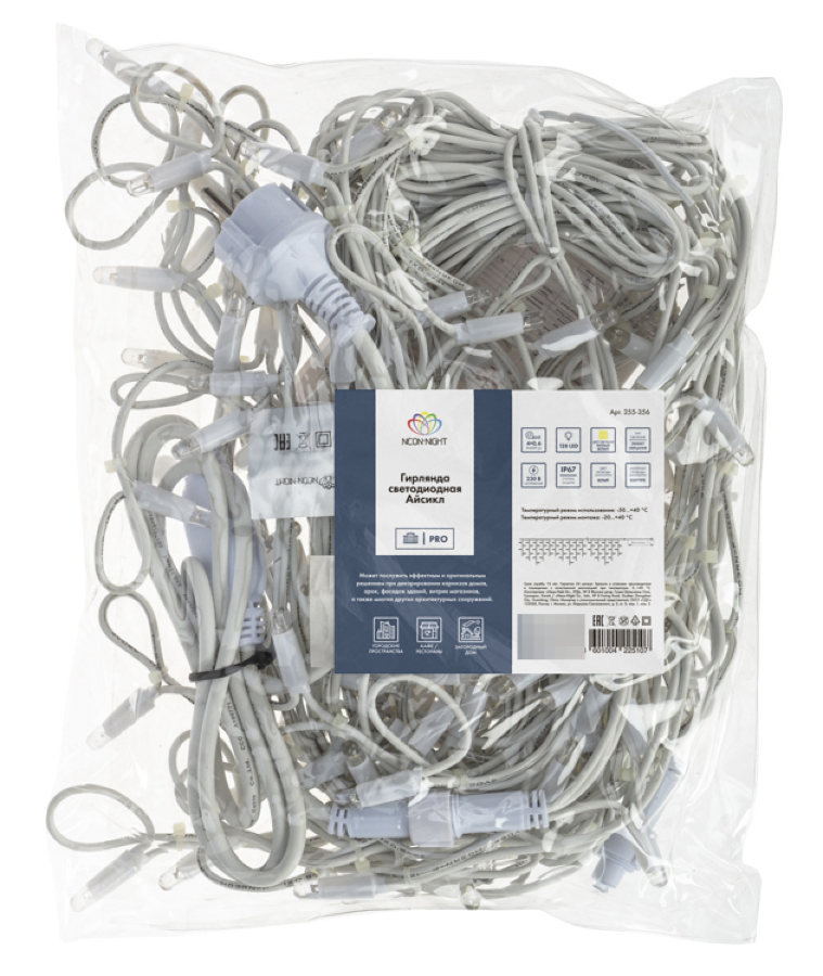 - Гирлянда уличная Neon-Night Айсикл светодиодная, белая, из каучука, теплый белый, 128 световых точек мерцание, IP67 4х0.6м - 1шт.