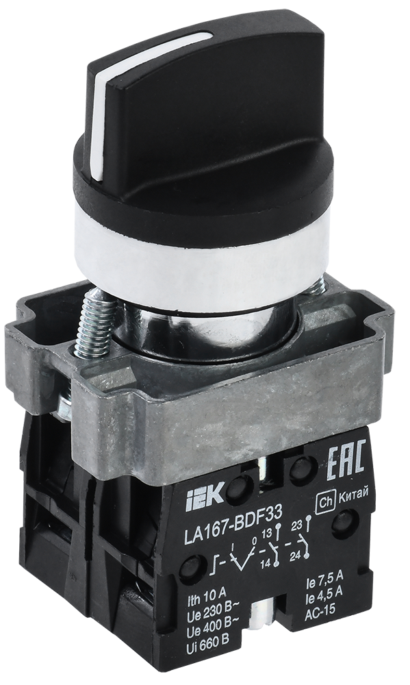 - Выключатель пакетный IEK LA167-BDF33 на 3 положения, 2NO, черный, IP65, BSW20-BDF33-4-24-67-3-K02 - 1шт.