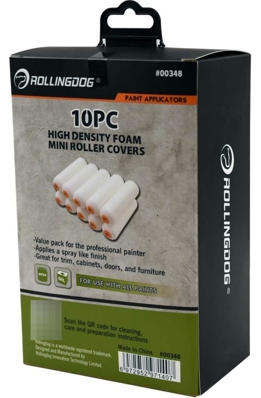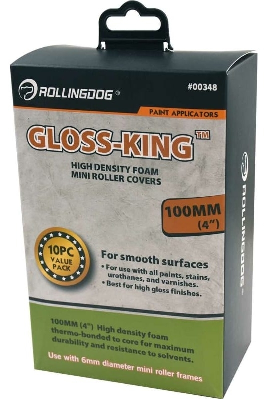 Малярный мини-валик Rollingdog Gloss-King из поролона высокой плотности, 100 мм, 10 шт, 00348 отлично работает с глянцевыми покрытиями на гладких поверхностях.