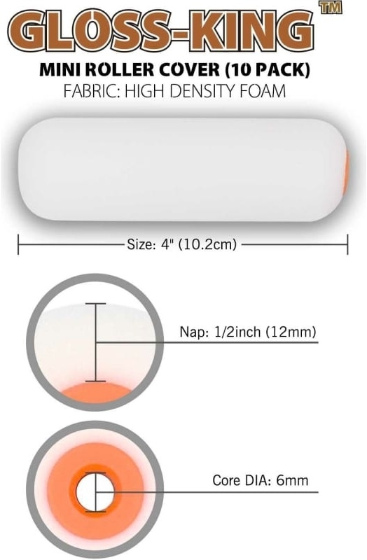 Набор валиков Rollingdog / Ролингдог GLOSS-KING для малярных работ, из поролона, ворс 12мм, крепление 6мм, длина 100мм, 10шт. / инструменты