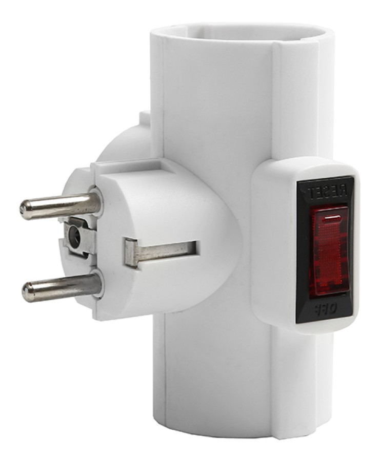 - Разветвитель электрический сетевой DOMTOK Т-образный с термовыключателем, с заземление и шторками, 3 розетки, 250В 3500Вт, белый, 2663 - 1шт.