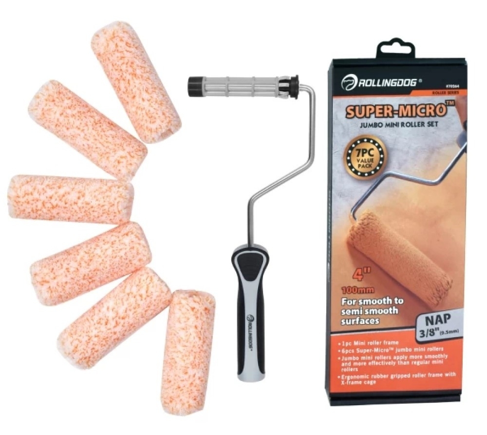 Набор валиков Rollingdog / Ролингдог SUPER-MICRO с бюгелем для малярных работ, из микрофибры, ворс 9.5мм, крепление 6мм, длина 20мм, 6шт. / инструменты