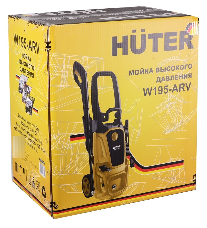 Мойка высокого давления Huter / Хутер W195-ARV электрическая, цвет желтый, 230В, 195бар, 420л/ч, 2500Вт / оборудование