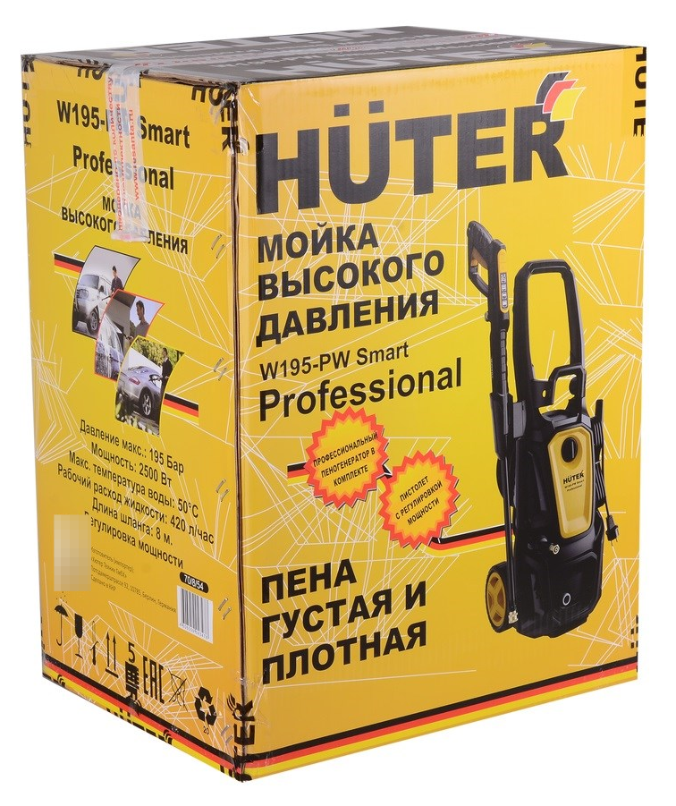 Мойка высокого давления Huter / Хутер W195-PW Smart Professional электрическая, цвет желтый, 230В, 195бар, 420л/ч, 2500Вт / оборудование