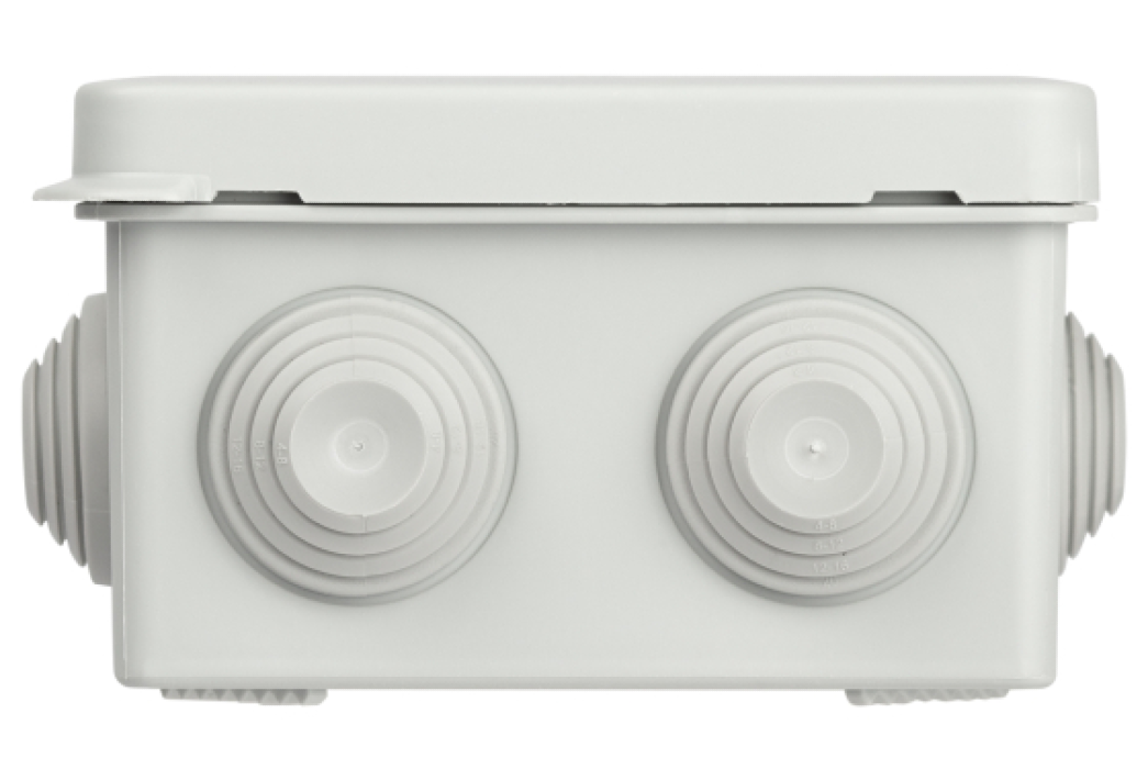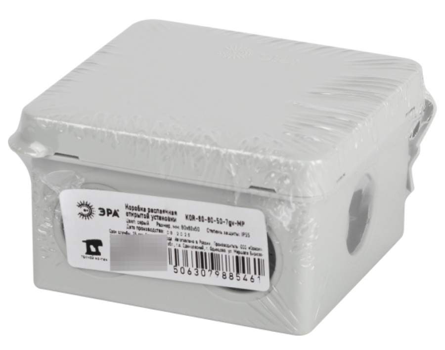 - Распределительная коробка ЭРА KOR-80-80-50-7gv-MP, наружная серая, 80х80х50мм, открытой установки, 7 гермовводов, IP55, Б0069877 - 1шт.