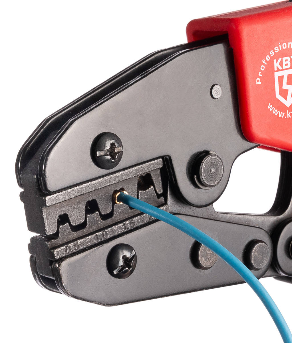 - Пресс-клещи КВТ CTK-04 Профи для лепесткового двухконтурного обжима втулочных наконечников с храповым механизмом, длина 220мм, поперечное сечение 0.25-2.5мм² - 1шт.