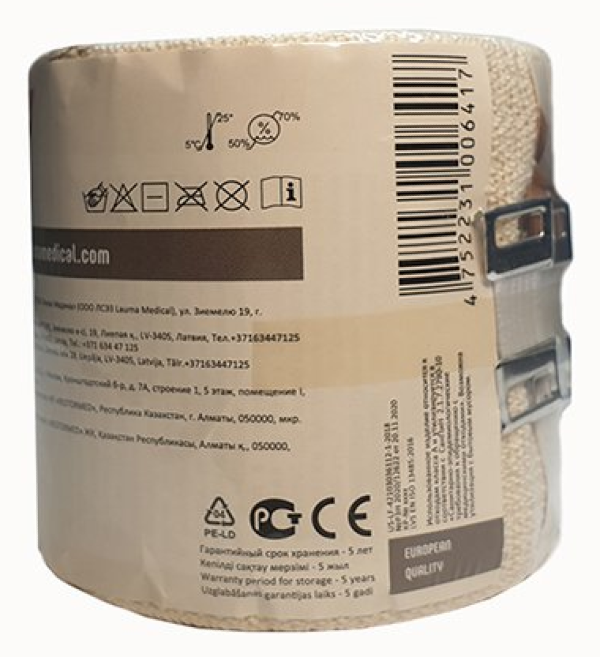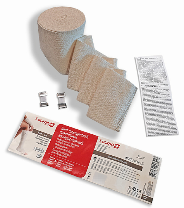 Представляет собой тканую эластичную ленту в цвете натурального сырья, определенной длины и ширины. Предназначен для накладывания на участки тела с целью их компрессии в различных превентивных/терапевтических целях.