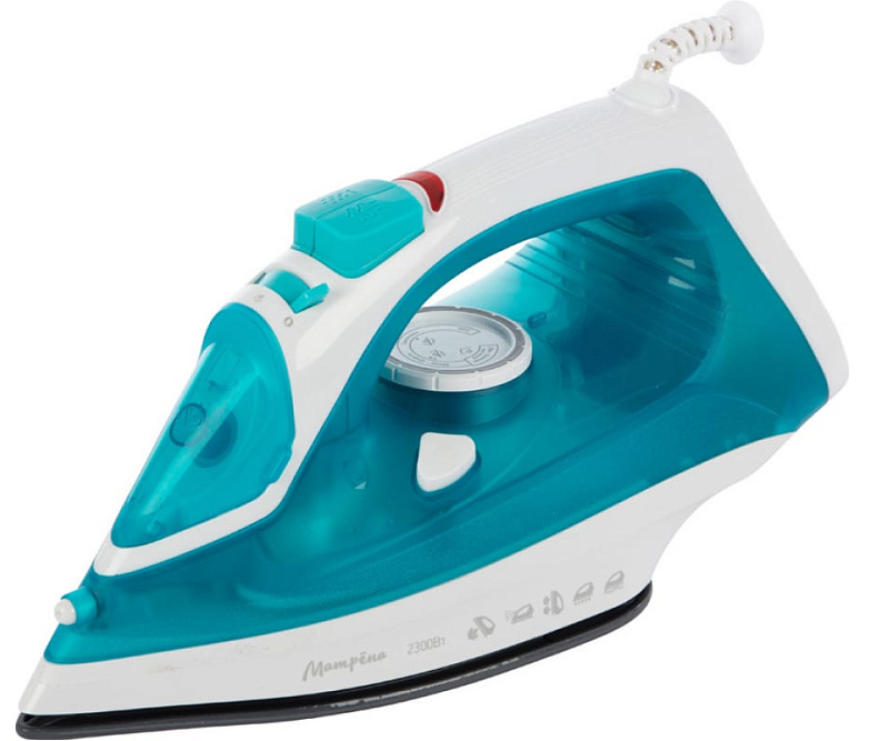 Утюг Матрёна МА-049 бирюзовый 2300 Вт. Пар, спрей, паровой удар, функция самоочистки, керамическая подошва предназначен для глажения белья, домашнего текстиля, одежды. Благодаря большой площади подошвы экономит время и обеспечивает равномерную подачу пара. Прост в использовании, за счет чего не требует специальных навыков.