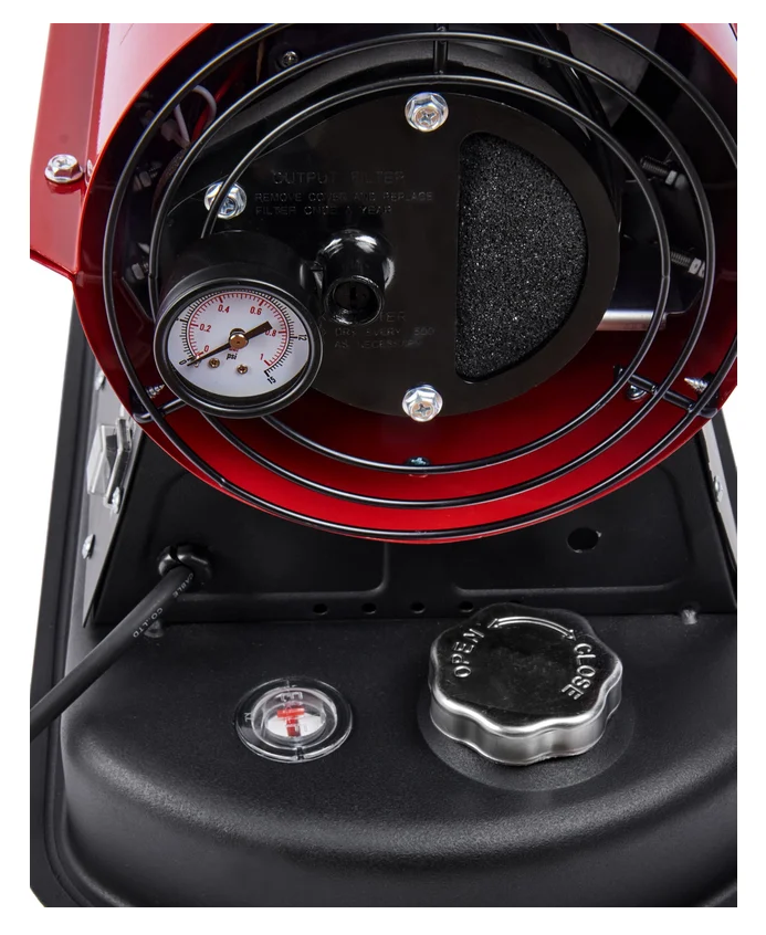 Дизельная тепловая пушка прямого нагрева (или воздухонагреватель) мощностью 15 кВт и производительностью 500 куб.метров/час предназначена для работы на открытых/полузакрытых площадках и временного обогрева/просушки хорошо проветриваемых помещений или с работающей приточно-вытяжной вентиляцией. Площадь обогрева пушки составляет около 160 кв.метров. Материал корпуса — сталь.