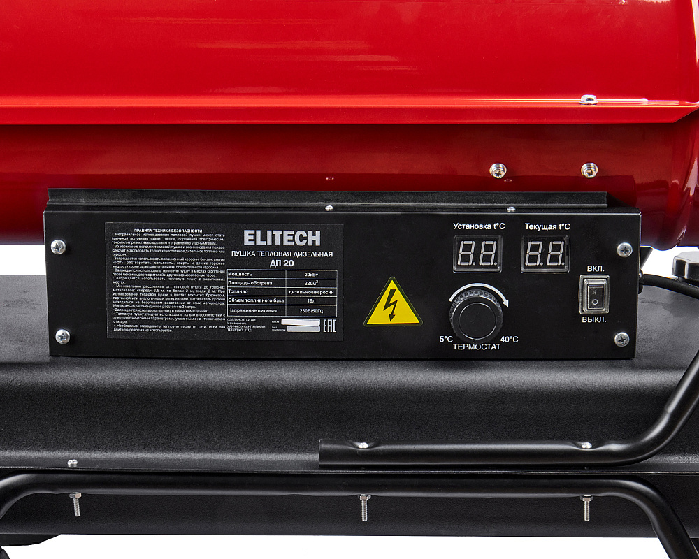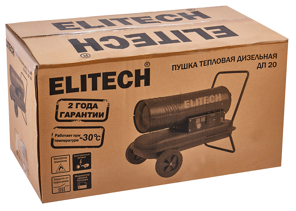 Тепловая пушка Elitech / Элитек ДП 20 дизельная, в металлическом корпусе, 765х395х560мм, 20кВт, 220м², 550м³/ч, IP 10 / отопление