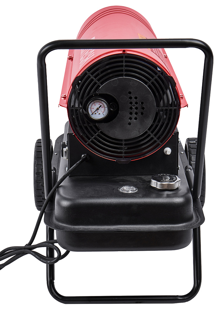 Дизельная тепловая пушка прямого нагрева (или воздухонагреватель) мощностью 20 кВт и производительностью 550 куб.м/час предназначена для работы на открытых/полузакрытых площадках и временного обогрева/просушки хорошо проветриваемых помещений или с работающей приточно-вытяжной вентиляцией. Площадь обогрева пушки составляет около 220 кв.метров.