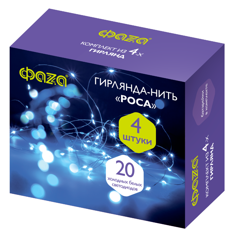 Гирлянда-роса с питанием от батареек. Элементы питания входят в комплект. В каждом комплекте — 4 гирлянды.