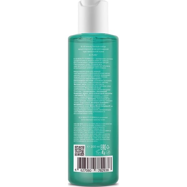 8.1.8 beauty formula Estique Мицеллярная вода для лица 200 мл подойдет обладательницам жирной и чувствительной кожи. Активные частицы косметического средства за одно движение устраняют косметику и загрязнения, обеспечивая бережный уход за лицом. Средство для снятия макияжа позволяет не только очистить кожу, но и обеспечить ей глубокое увлажнение благодаря богатому составу. В мицеллярной воде содержатся пептиды для лица, обеспечивающие упругость и эластичность кожи. Уходовое средство обладает антиоксидантным действием, восстанавливает микрофлору чувствительной и нежной кожи. Благодаря содержанию аллантоина усиливается регенерация, в результате чего кожа становится мягкой и бархатистой. За тонус и ровный цвет лица отвечают морские минералы. Благодаря очищению лица этим средством Ваша кожа станет матовой и бархатистой, жирный блеск устранится, а неровности и высыпания исчезнут!