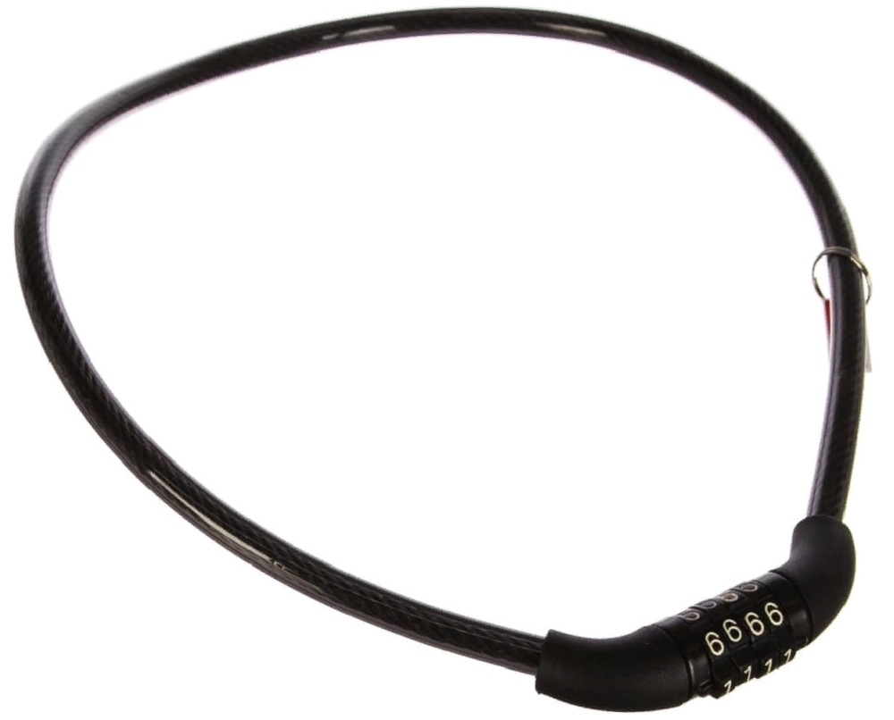 Замок велосипедный представляет собой стальной трос в полимерном чехле. Он достаточно гибкий и устойчивый к перекусыванию. Материал защищает от влаги и царапин, сохраняя внешний вид аксессуара безупречным.